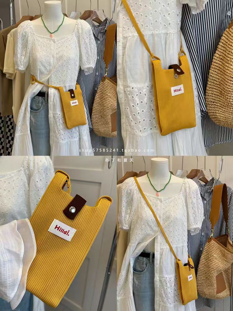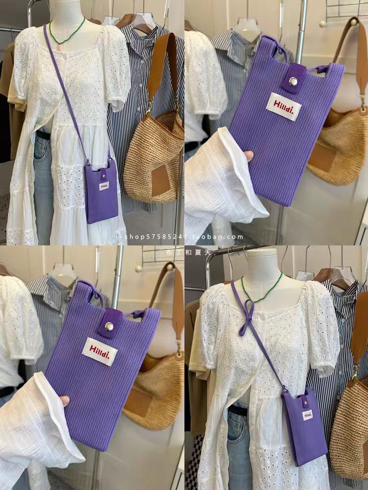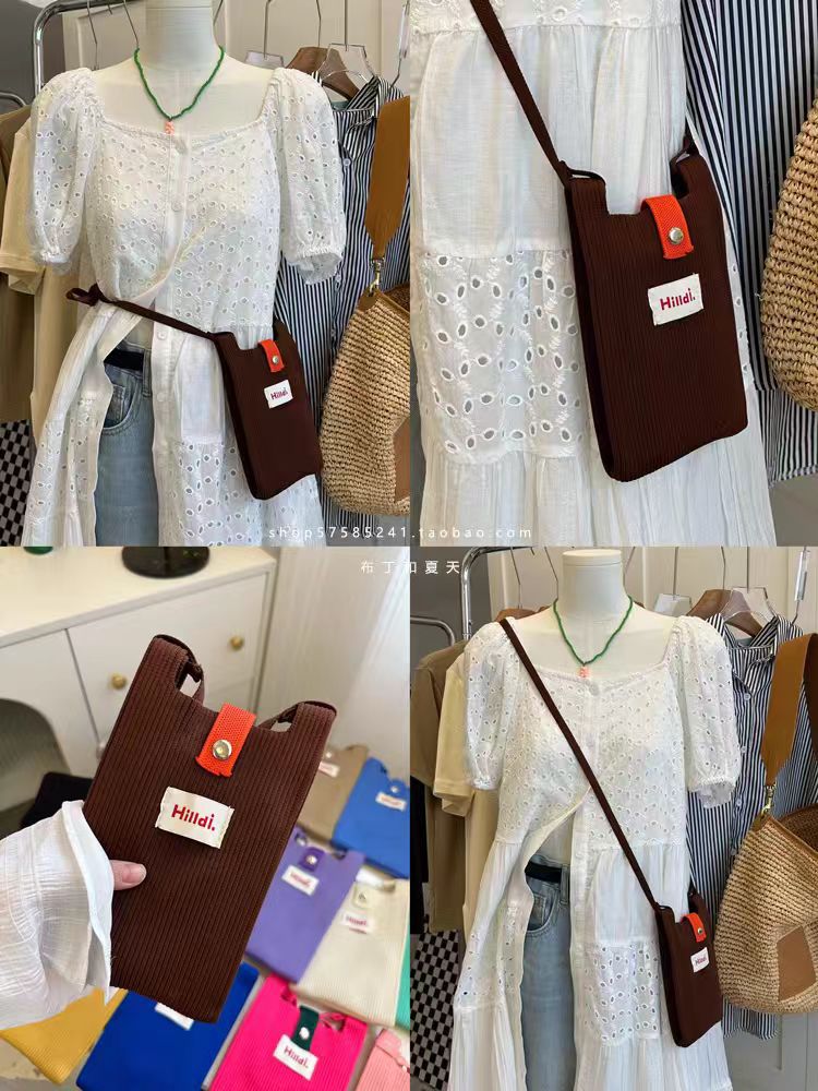 새로운 솔리드 컬러 틈새 디자인 휴대 전화 가방 패션 핸드백 니트 미니 어깨 크로스 바디 가방 휴일 선물스토어 가기