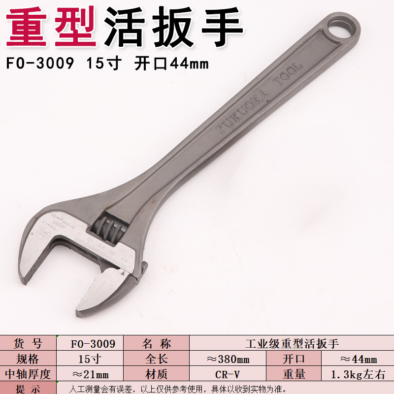후쿠오카 15inch 긴 핸들 조절 렌치 산업용 등급 헤비 듀티 파이프 보드 FO3009 라이트 핸들 수리 수공구스토어 가기