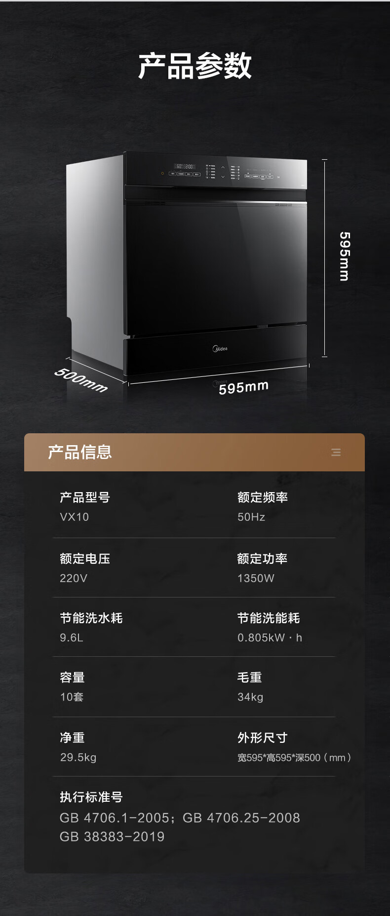 Midea 스마트 식기 세척기 VX10 내장형 완전 자동 가정용 10세트 스토브 아래 주파수 변환 소독 열풍 건조 02