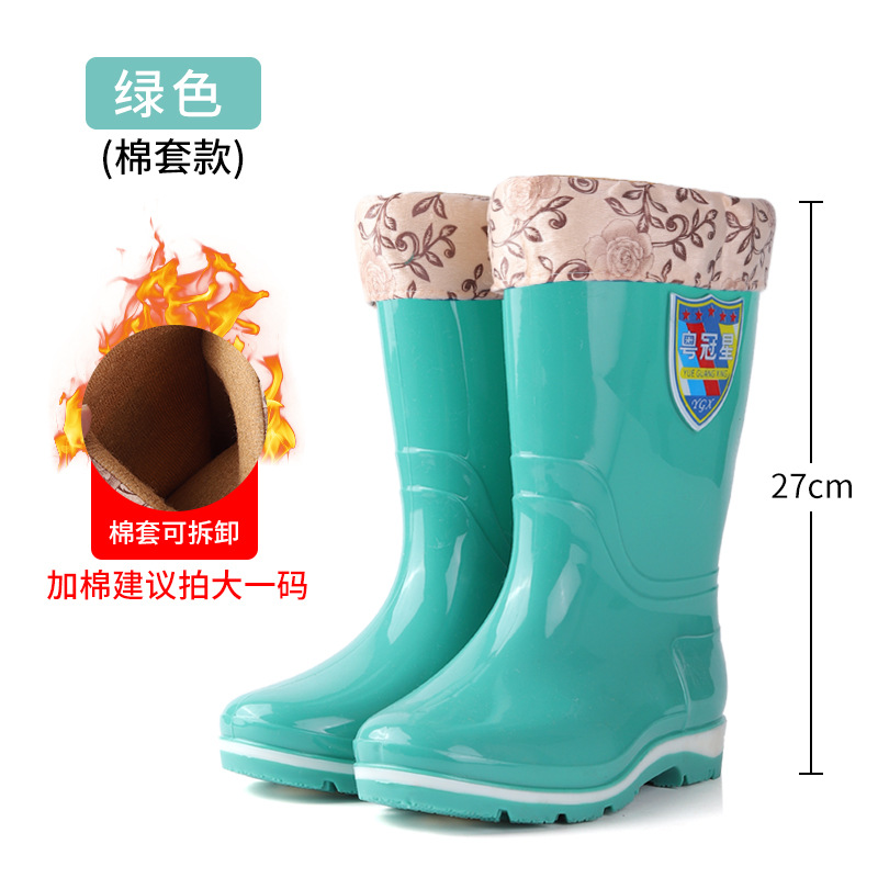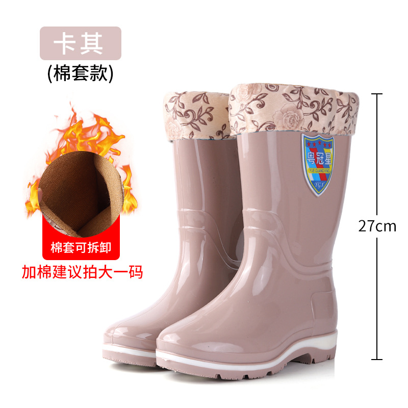 2025 새로운 라운드 헤드 PVC 중간 튜브 성인 여성용 장화 미끄럼 방지 방수 두꺼운 밑창 긴 튜브 여성용 벨벳 장화스토어 가기