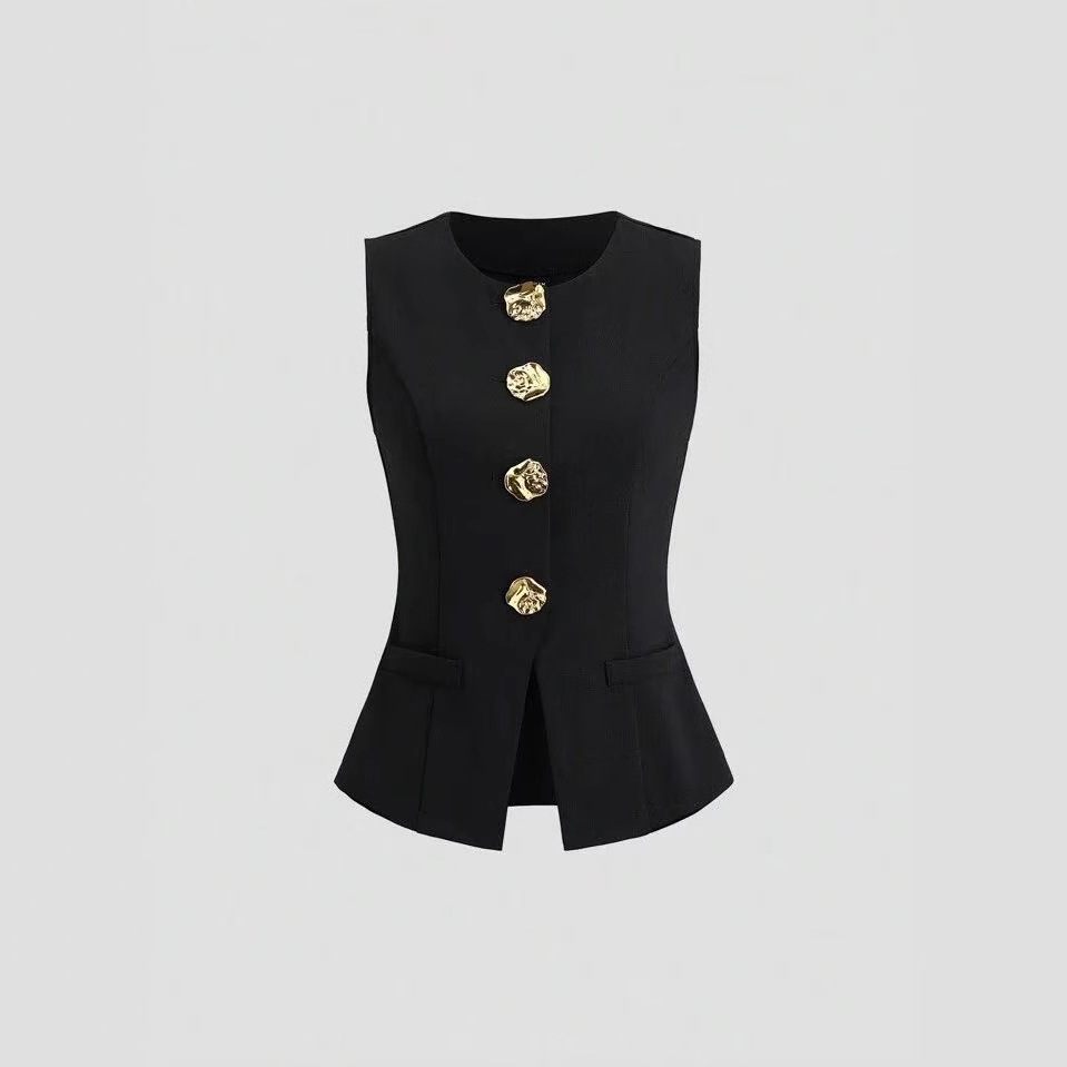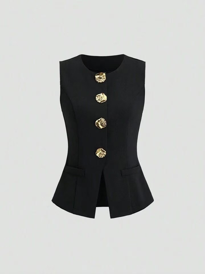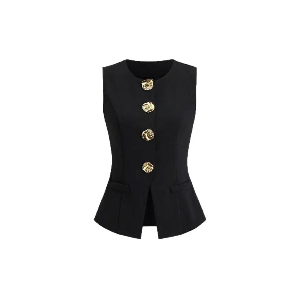 2025 유럽과 미국의 국경 간 패션 스타일 새로운 버튼 작은 향기로운 양복 조끼 여성 봄, 여름 겉옷 얇고 높은