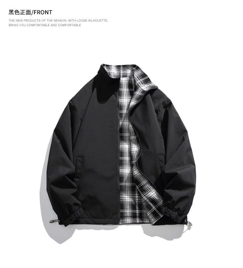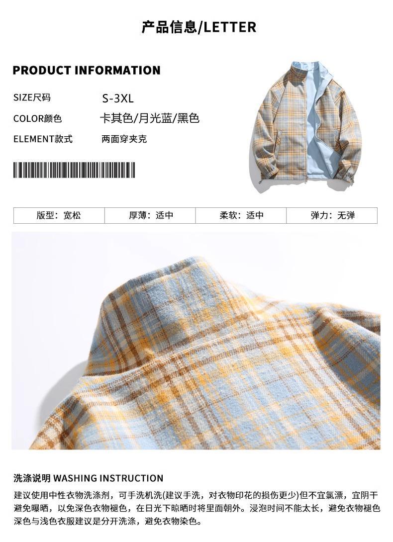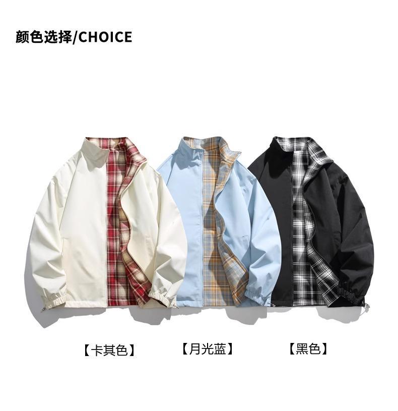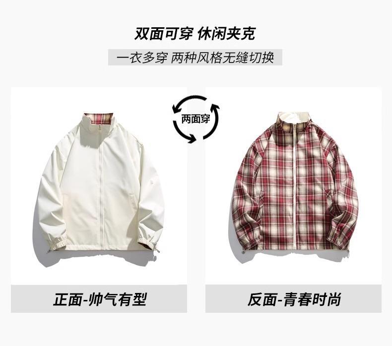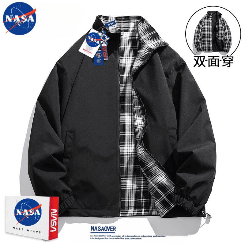 NASA Joint Autumn 새로운 양면 자켓 플레이드 칼라 지퍼 재킷 커플을위한 동일한 스타일 탑을 가진 남성과 여성을위한스토어 가기