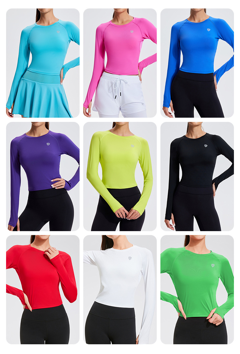 [2025 새로운 스타일] 속건성 긴팔 짧은 스포츠 티셔츠 야외 러닝 피트니스 의류 메쉬 통기성 여성 C019