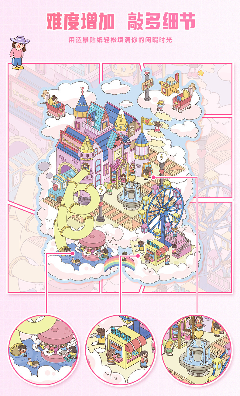 34.0 풍경 스티커 만화 대형 마이크로 스케일 장면 스티커 3D 스테레오 학생 계정 콜라주 감압 수제 스티커스토어 가기