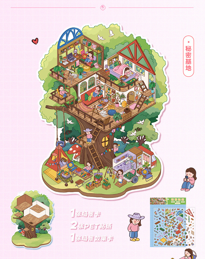 34.0 풍경 스티커 만화 대형 마이크로 스케일 장면 스티커 3D 스테레오 학생 계정 콜라주 감압 수제 스티커