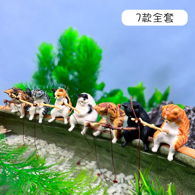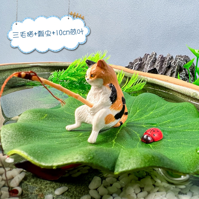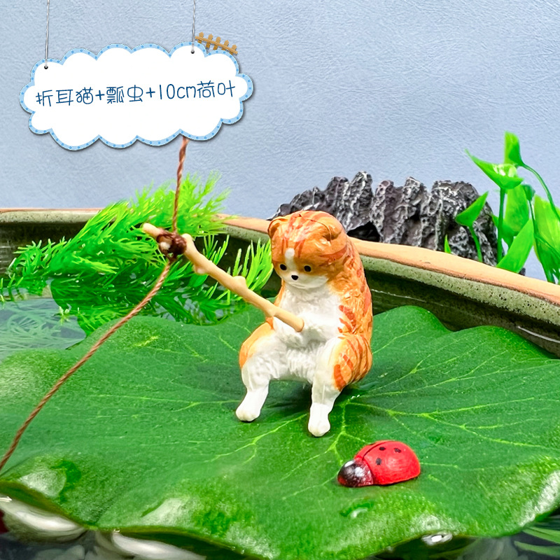 새끼 고양이 낚시 장식품 물고기 탱크 조경 야옹 낚시 좋은 날씨 레저 고양이 낚시 장식스토어 가기