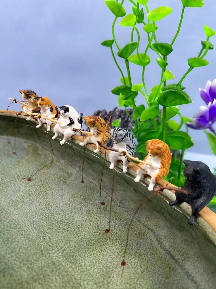 새끼 고양이 낚시 장식품 물고기 탱크 조경 야옹 낚시 좋은 날씨 레저 고양이 낚시 장식