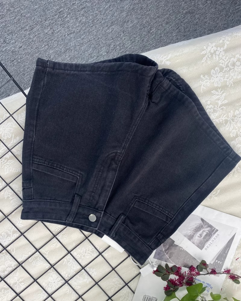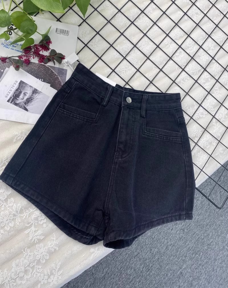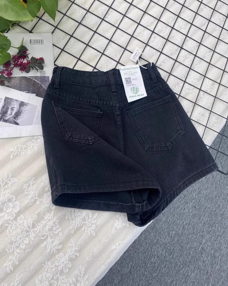 달콤한 쿨 블랙 플러스 사이즈 데님 반바지 여성 여름 배 모양의 높은 허리 슬리밍 느슨한 넓은 다리 A 자형 핫 팬츠 얇은스토어 가기