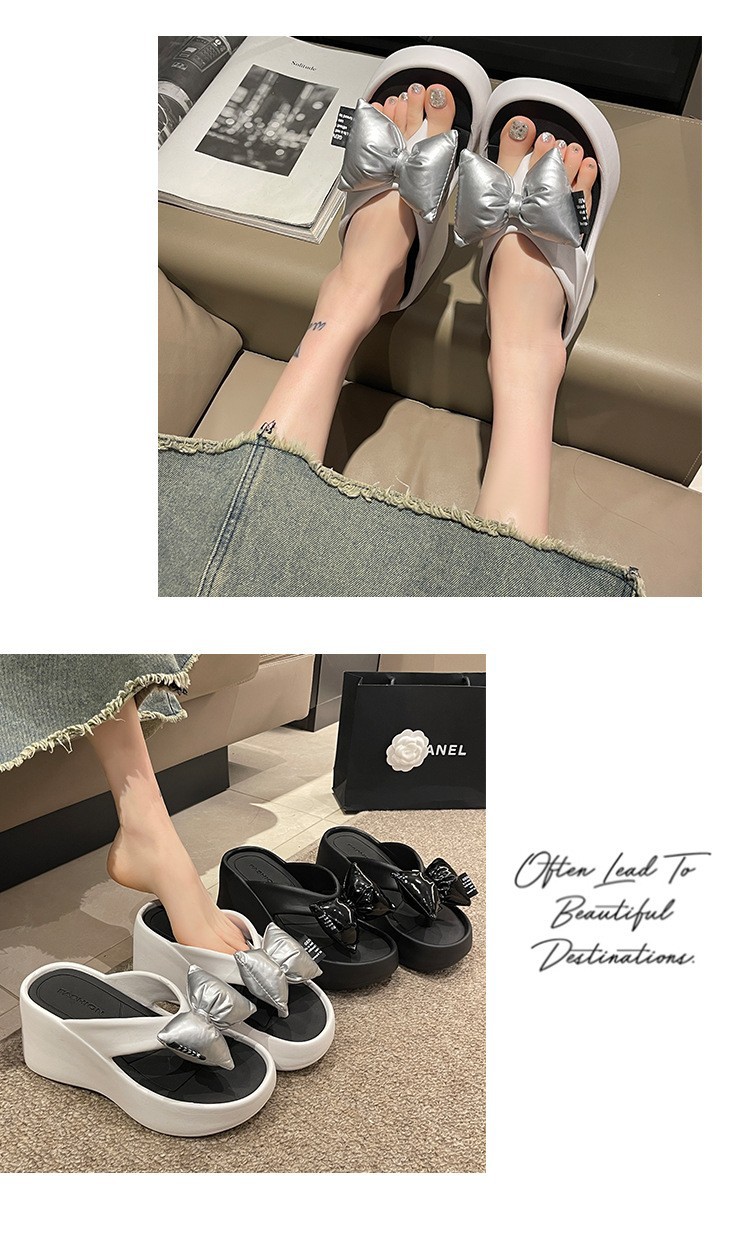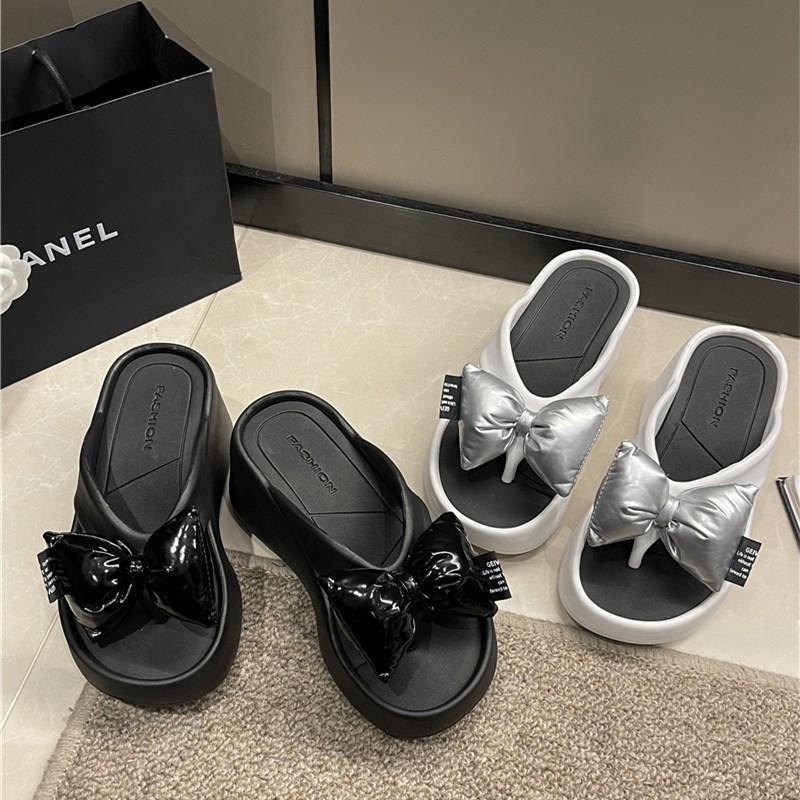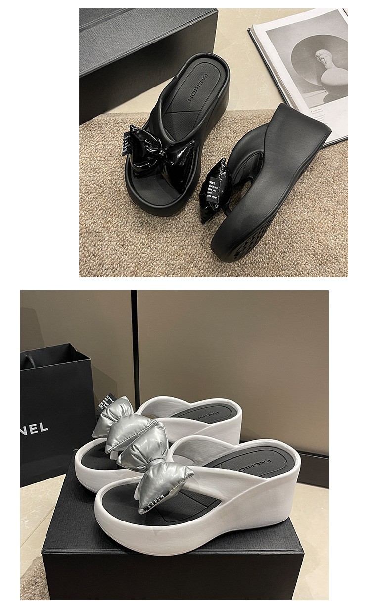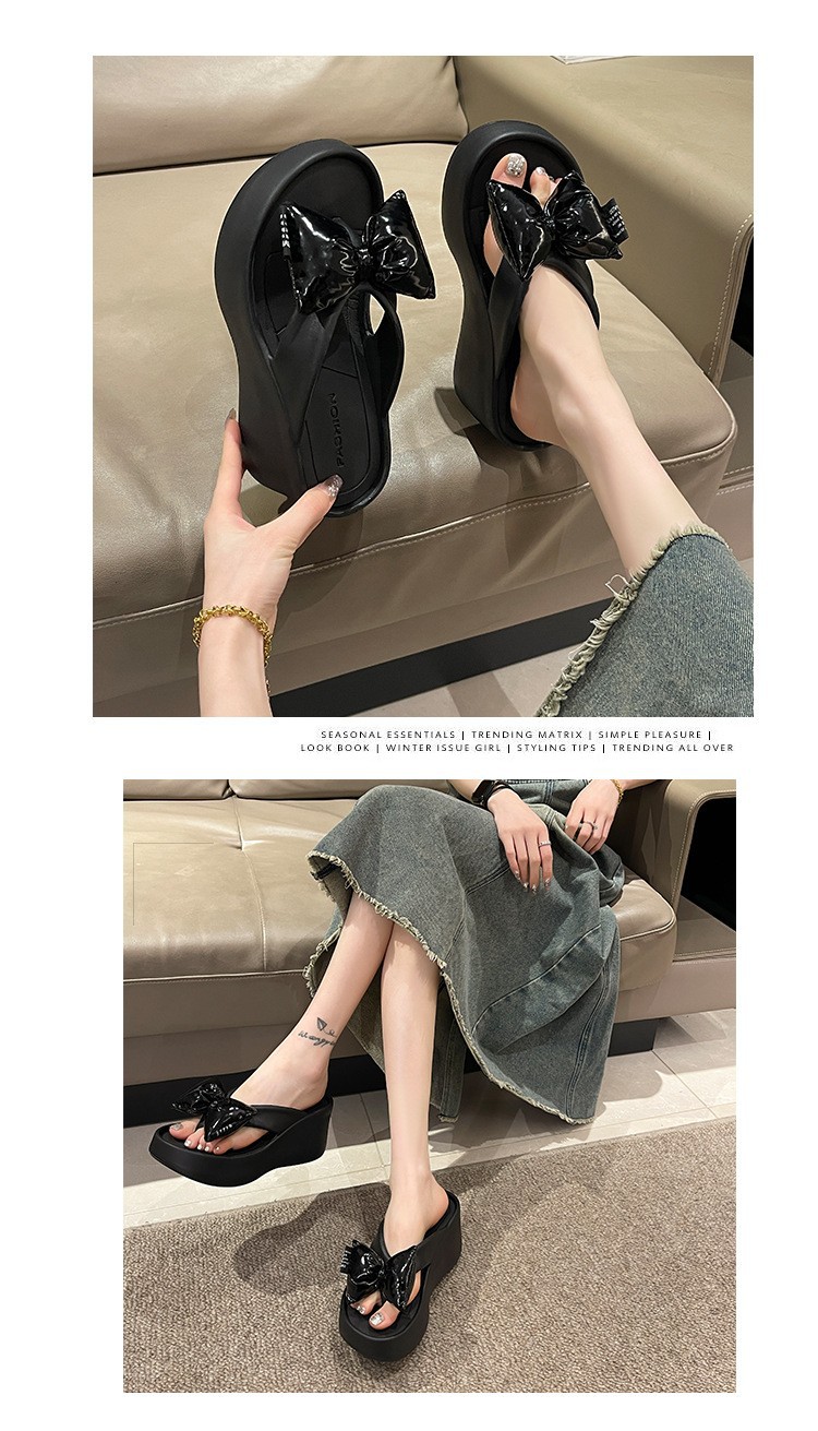 2025년 여름 신상 하이힐 8cm 여성용 슬리퍼, 패셔너블한 두꺼운 밑창 리본 슬리퍼, 비치 슬리퍼스토어 가기