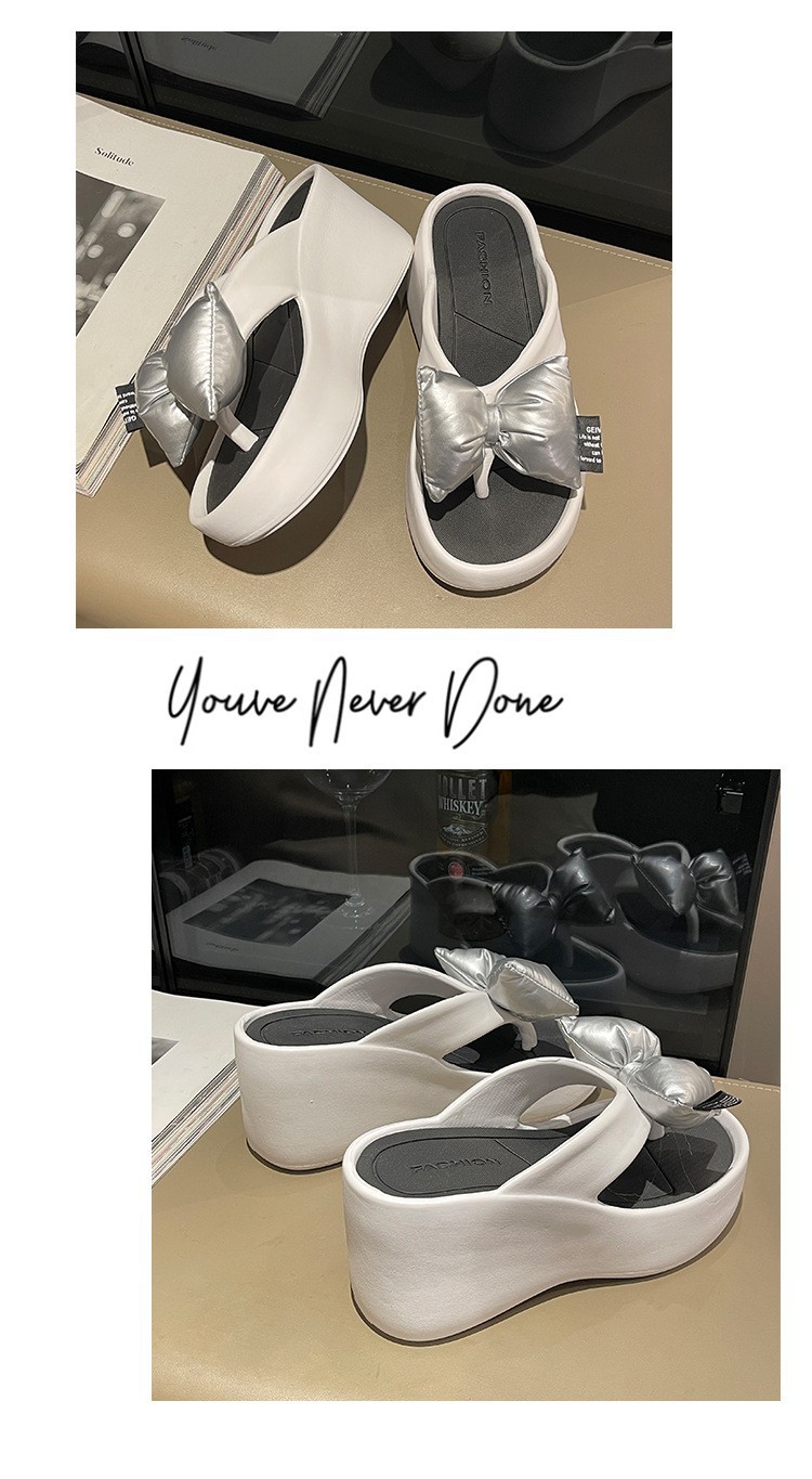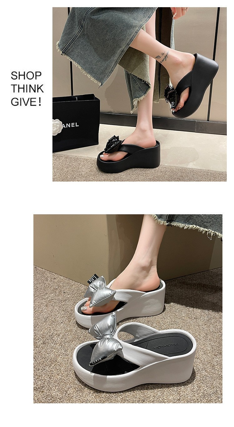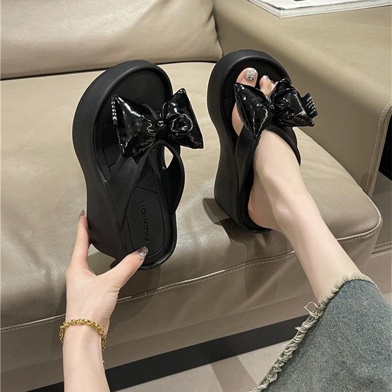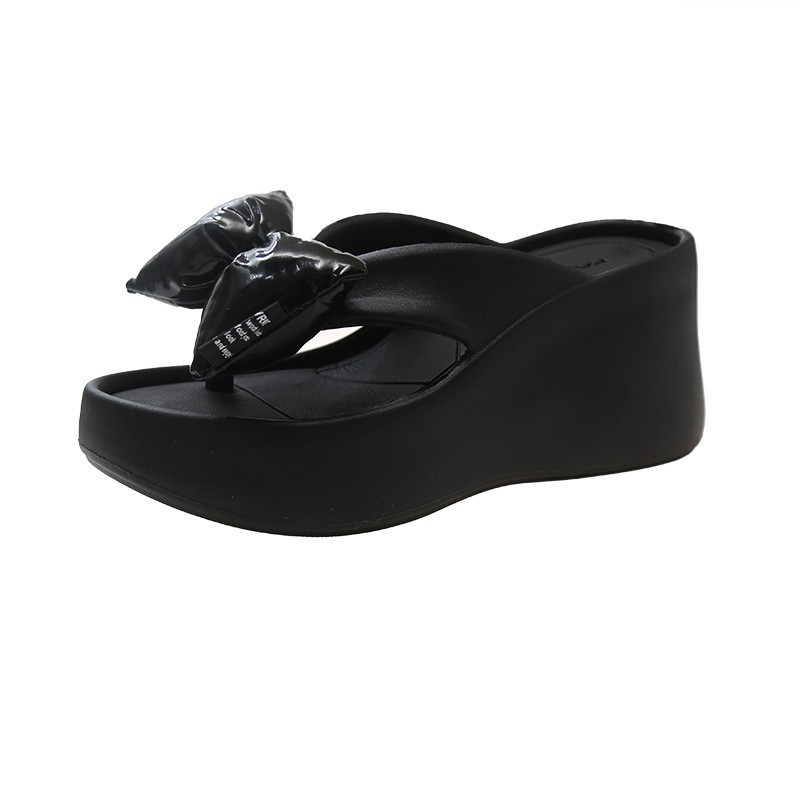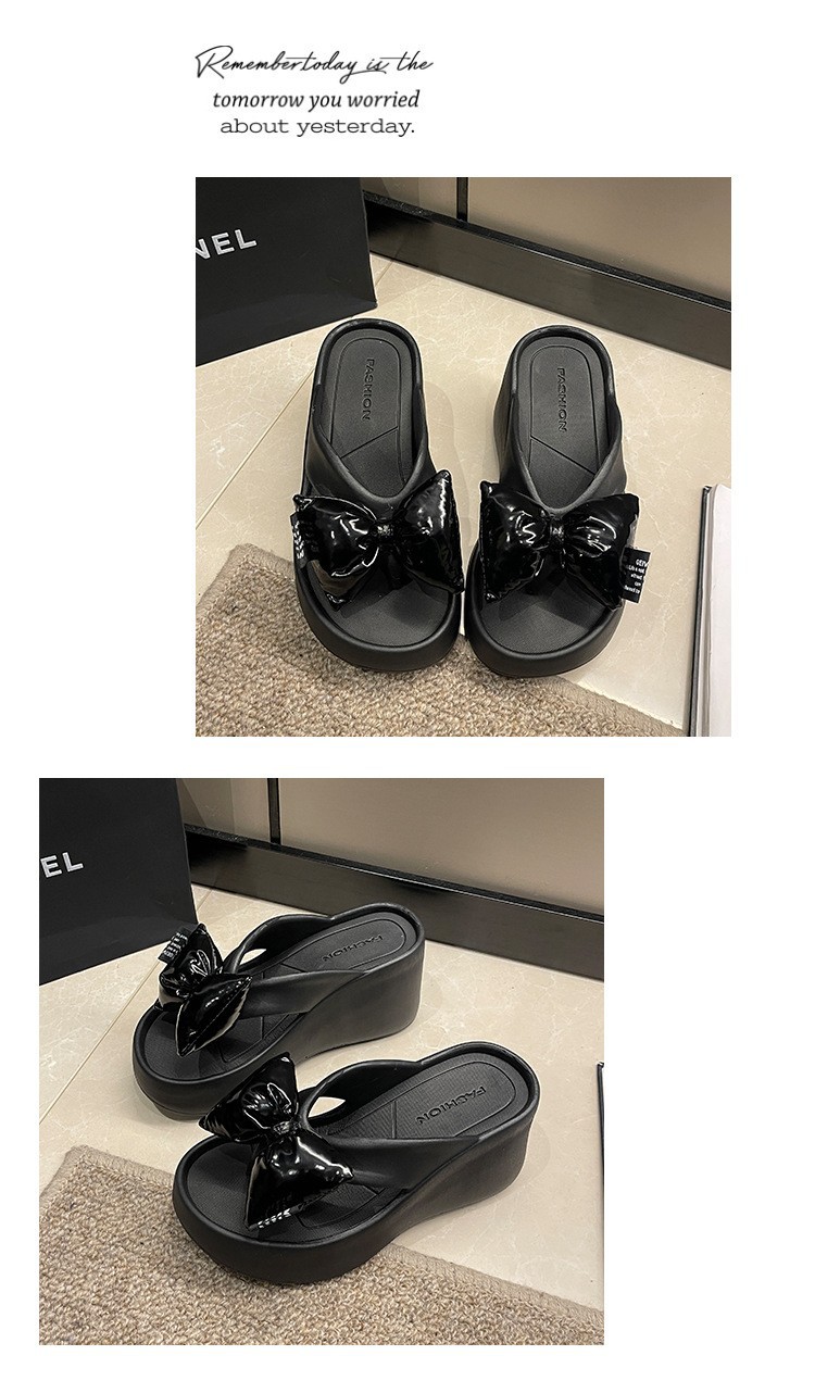 2025년 여름 신상 하이힐 8cm 여성용 슬리퍼, 패셔너블한 두꺼운 밑창 리본 슬리퍼, 비치 슬리퍼스토어 가기