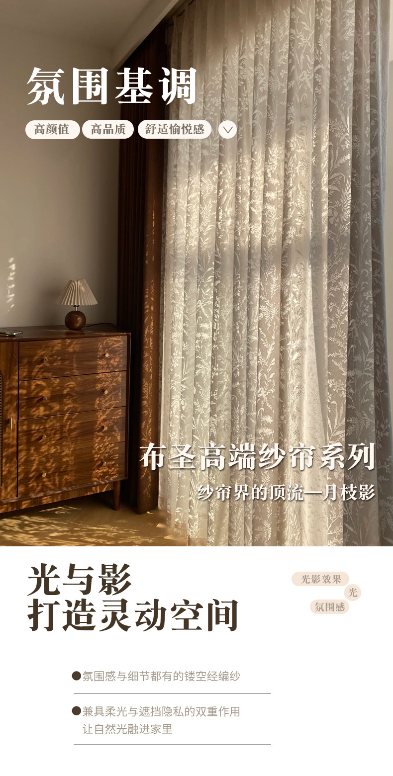 프렌치 라이트 럭셔리 거실 발코니 크림 스타일 중공 달 가지 그림자 커튼은 침실 창 스크린에 비치되 불투명합니다.스토어 가기