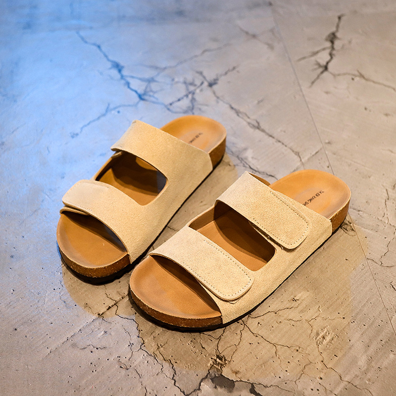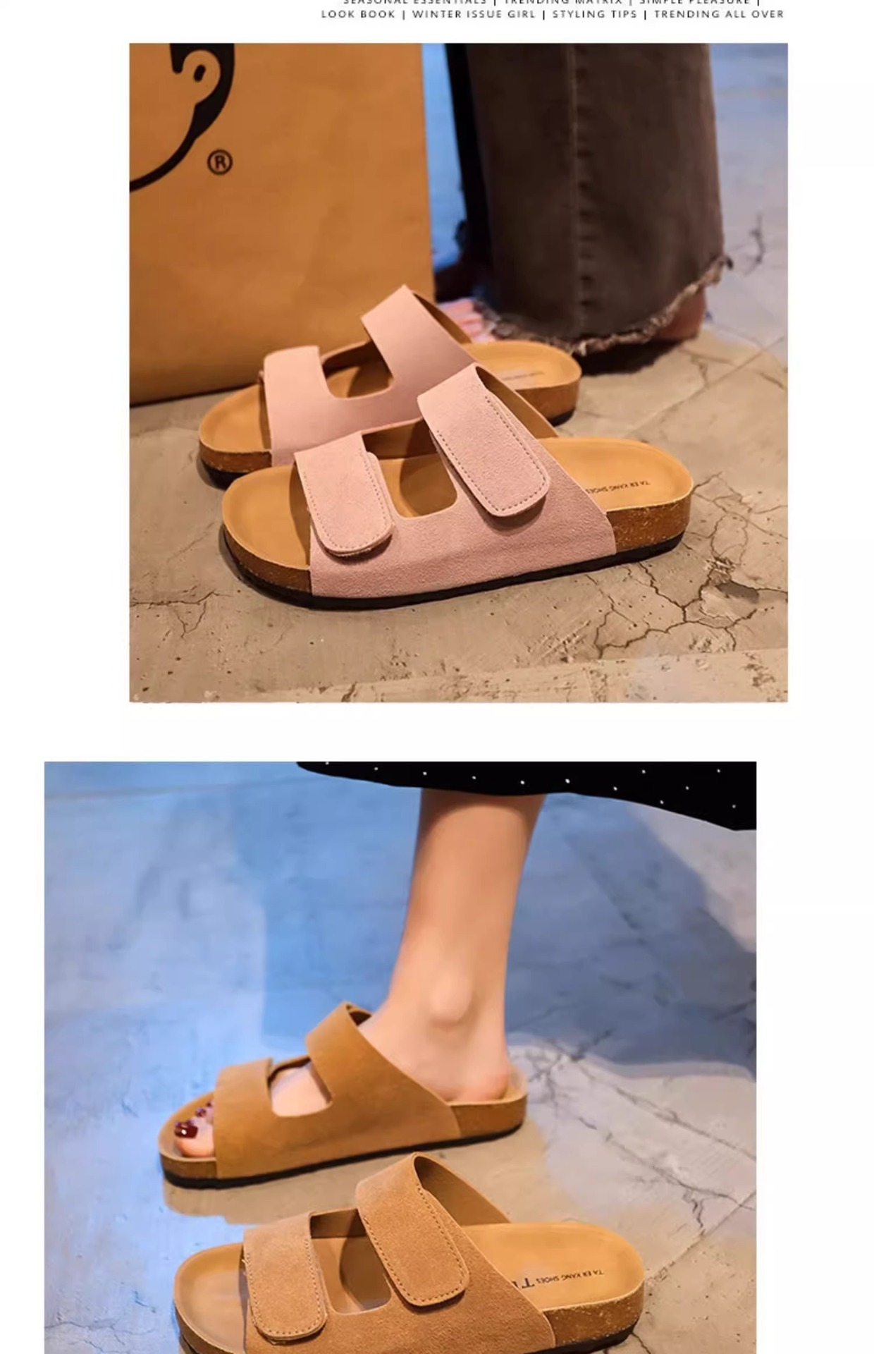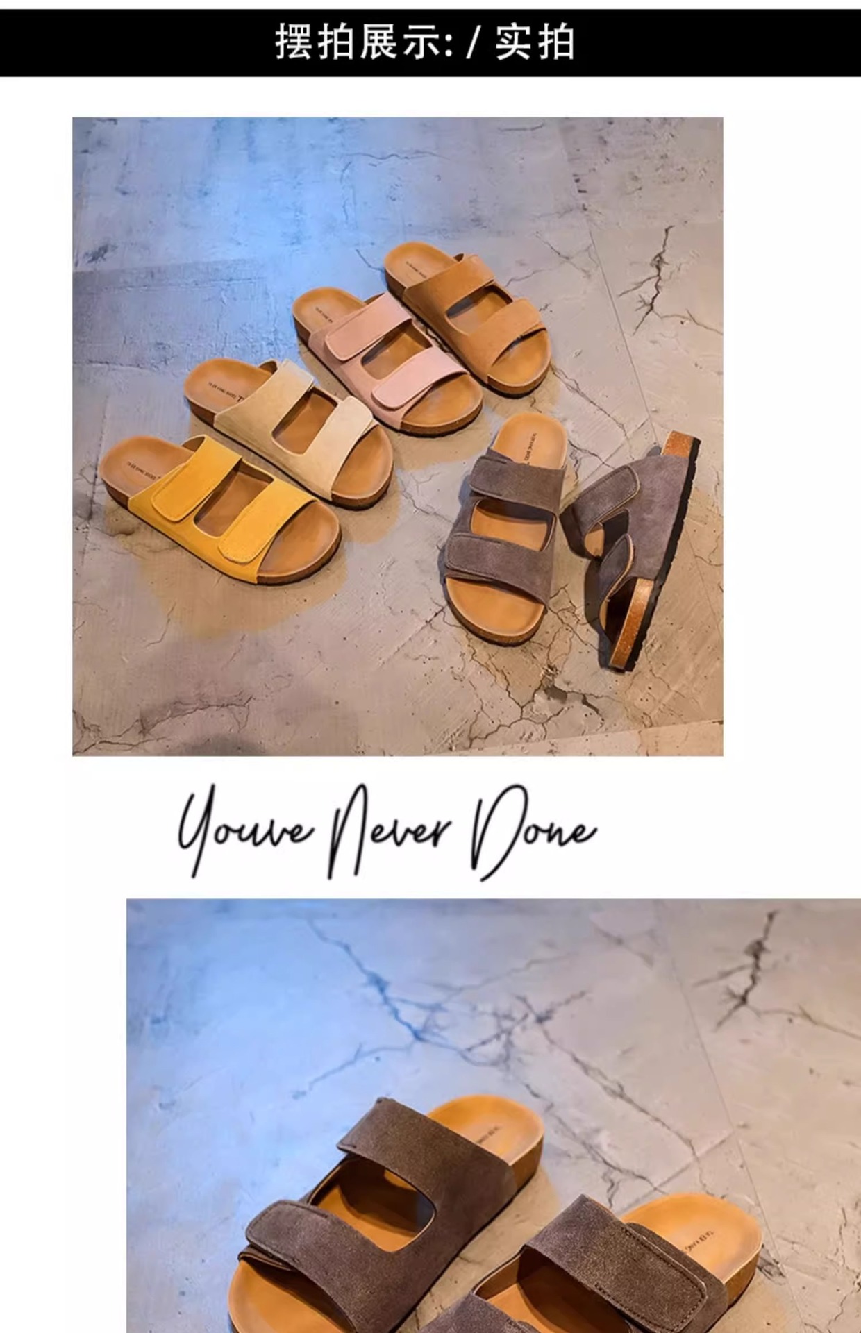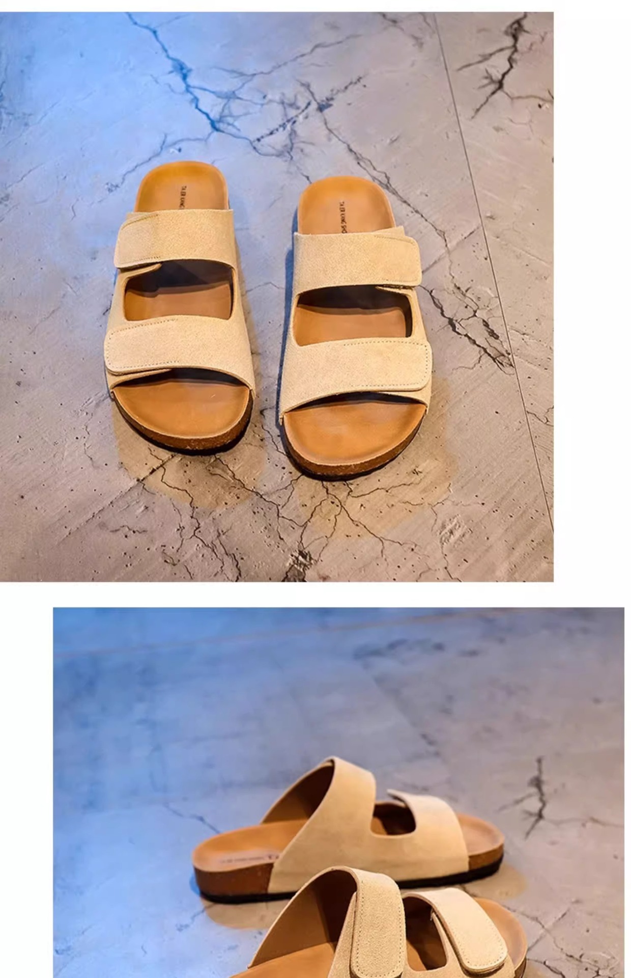 Cowhide Edition ~ 두꺼운 단독 Birkan 신발 슬리퍼 여성 여름 외부 착용 2025 새로운 해변 해변 한 단어 벨크로 샌들