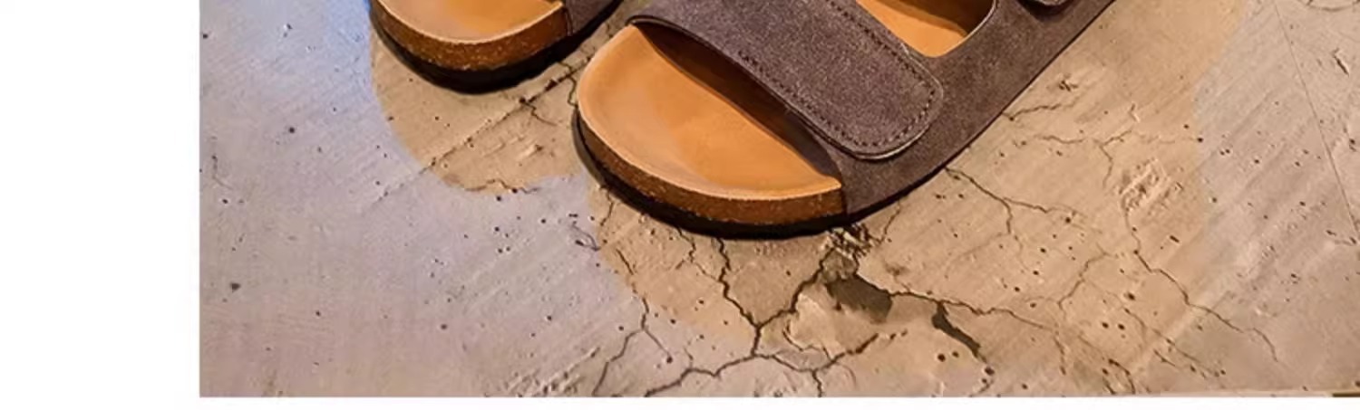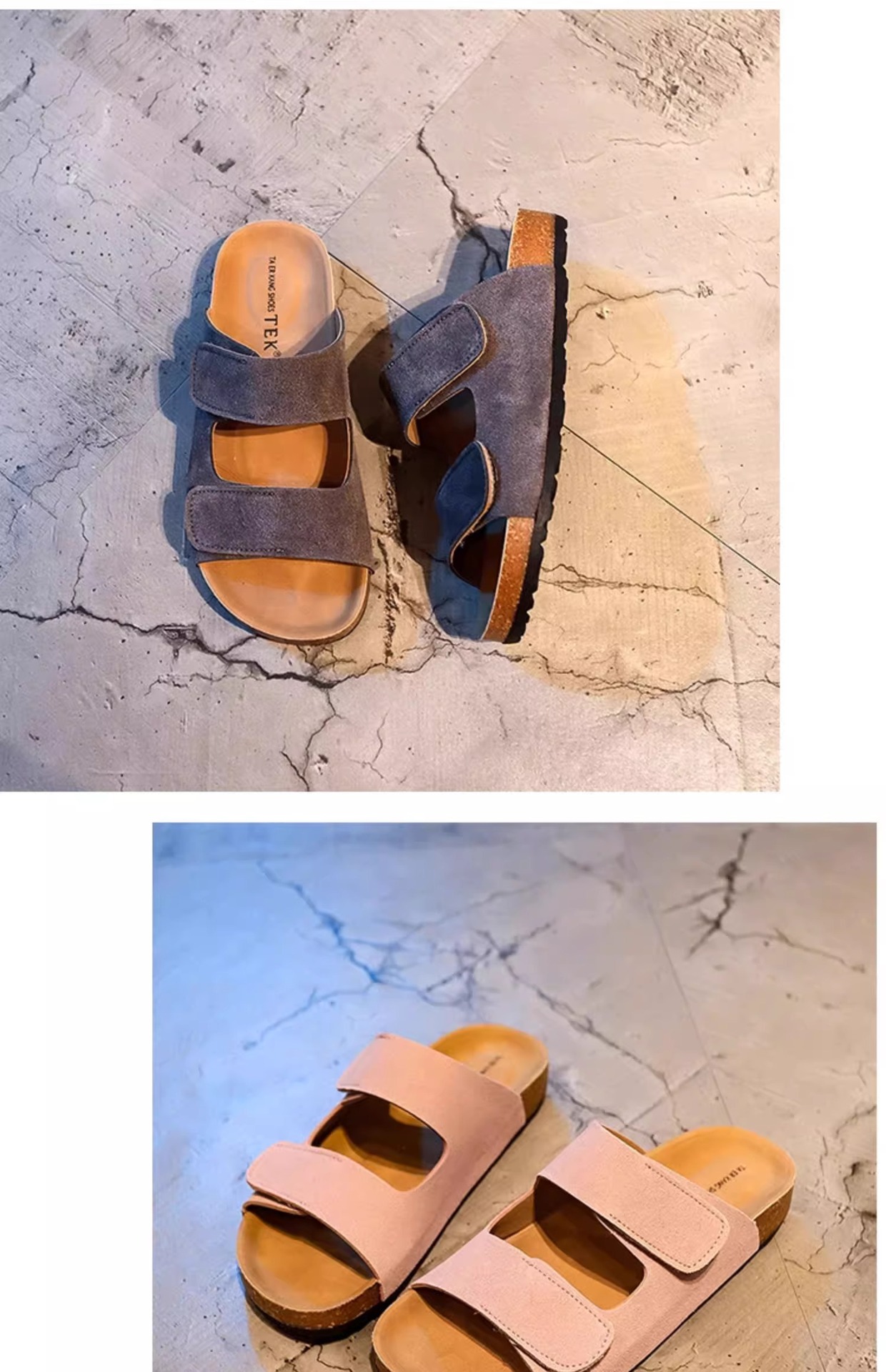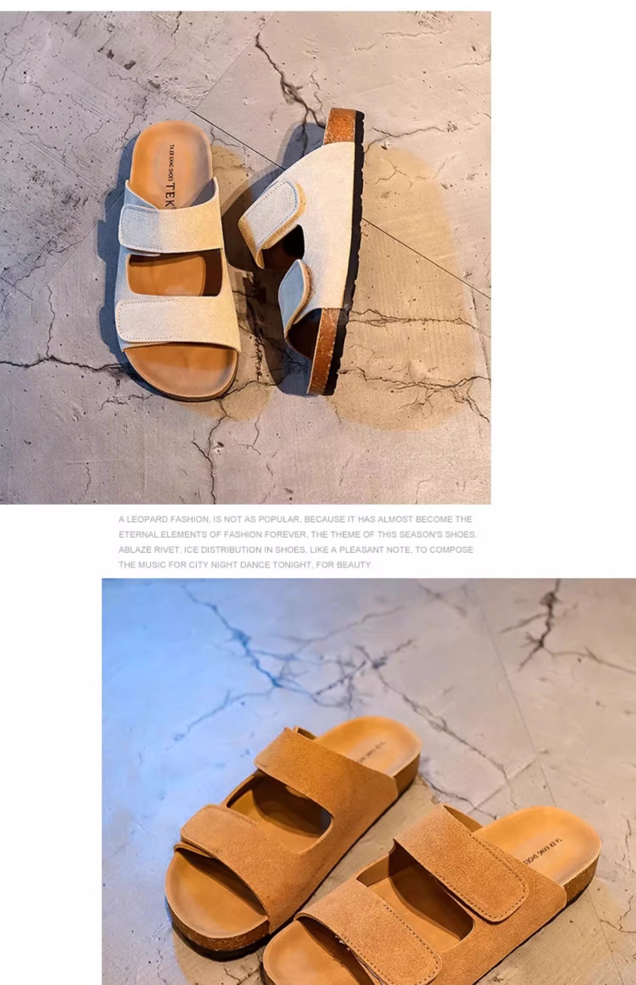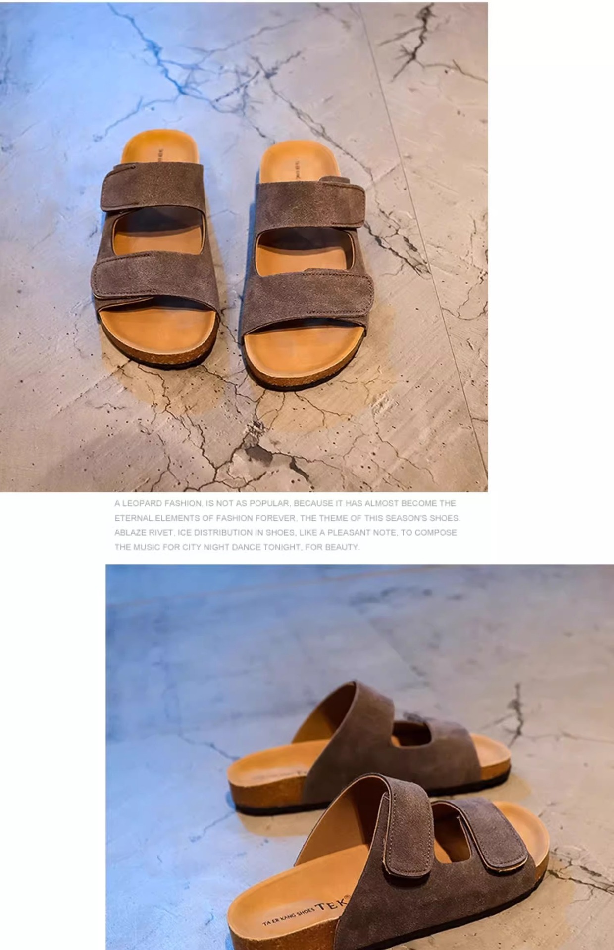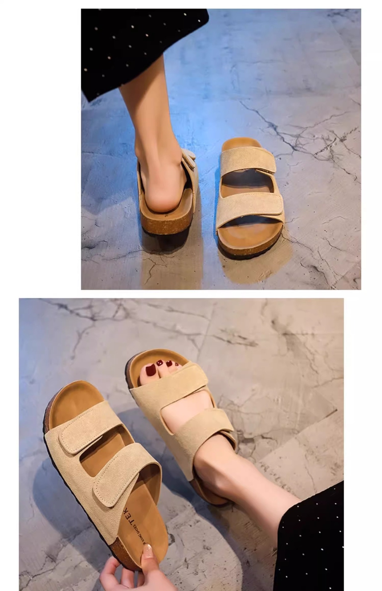 Cowhide Edition ~ 두꺼운 단독 Birkan 신발 슬리퍼 여성 여름 외부 착용 2025 새로운 해변 해변 한 단어 벨크로 샌들