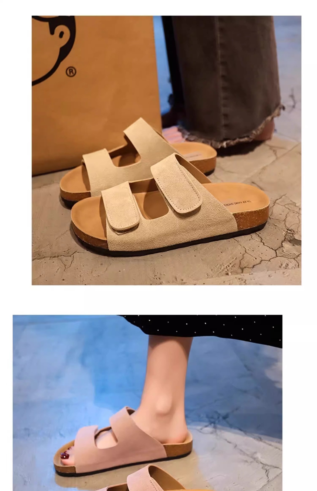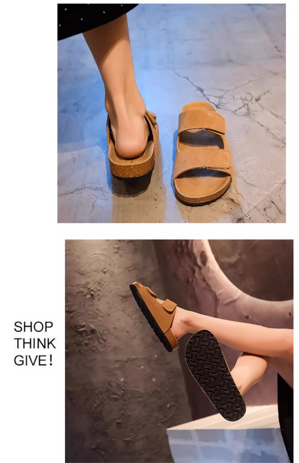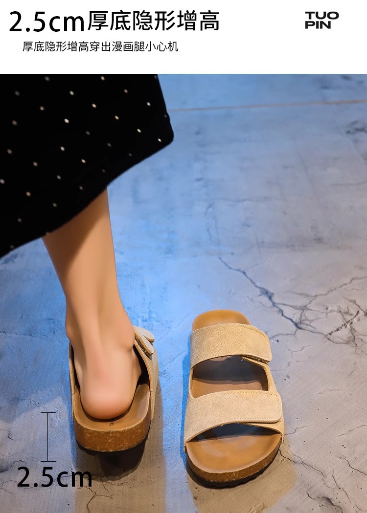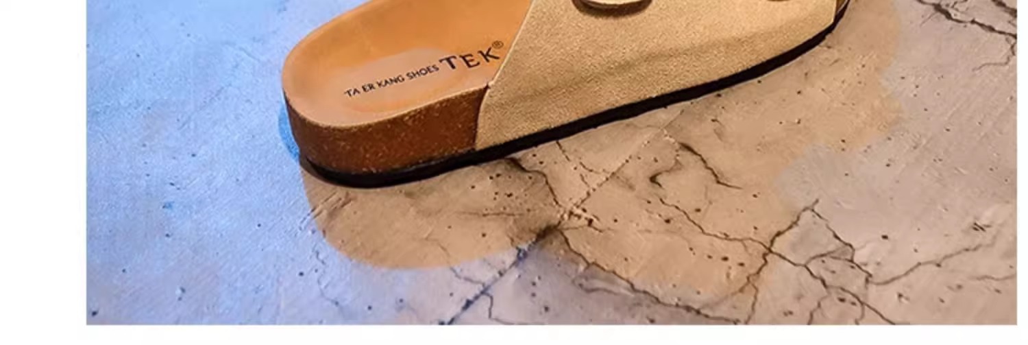 Cowhide Edition ~ 두꺼운 단독 Birkan 신발 슬리퍼 여성 여름 외부 착용 2025 새로운 해변 해변 한 단어 벨크로 샌들