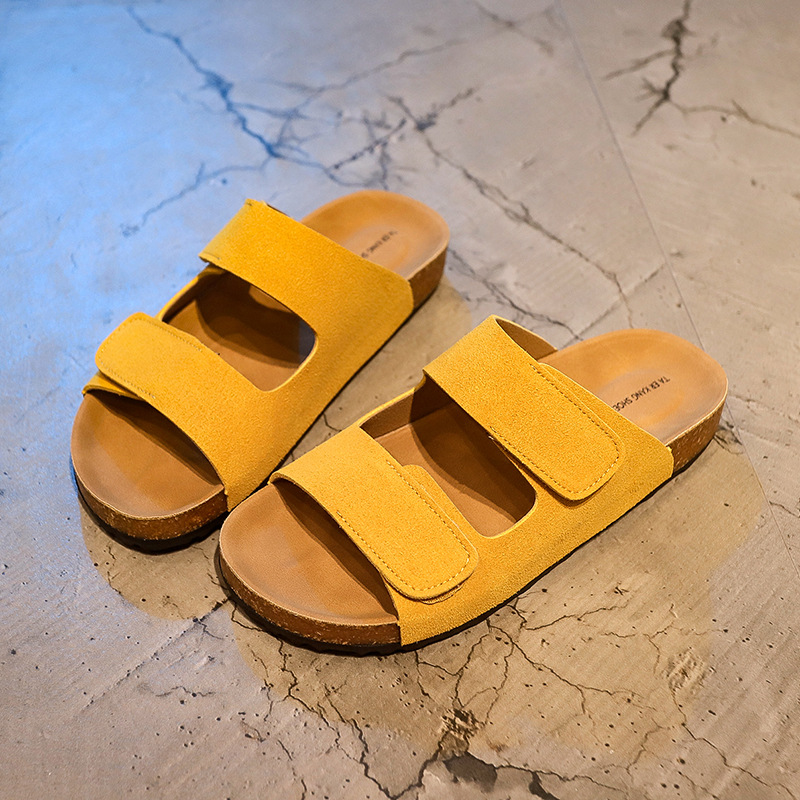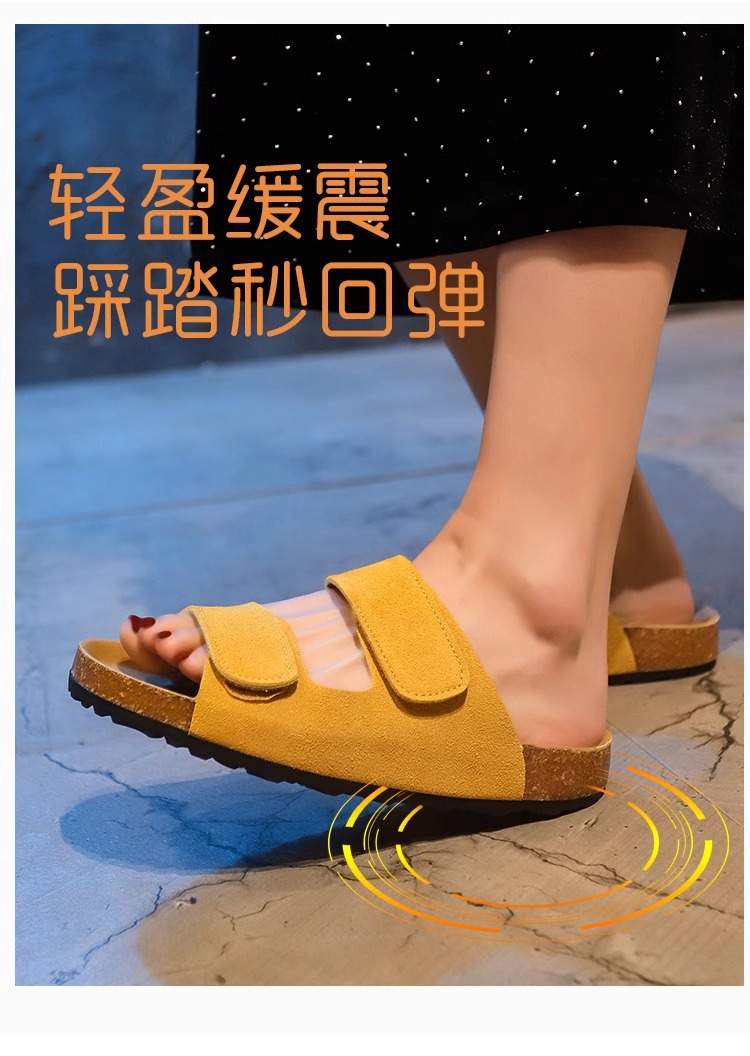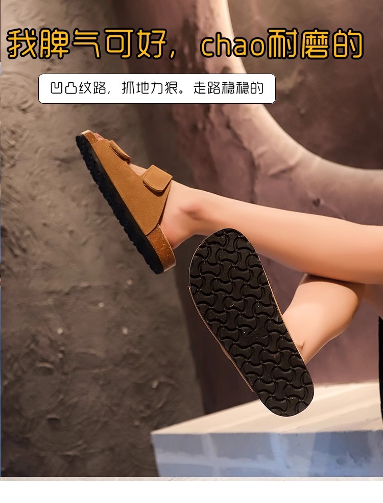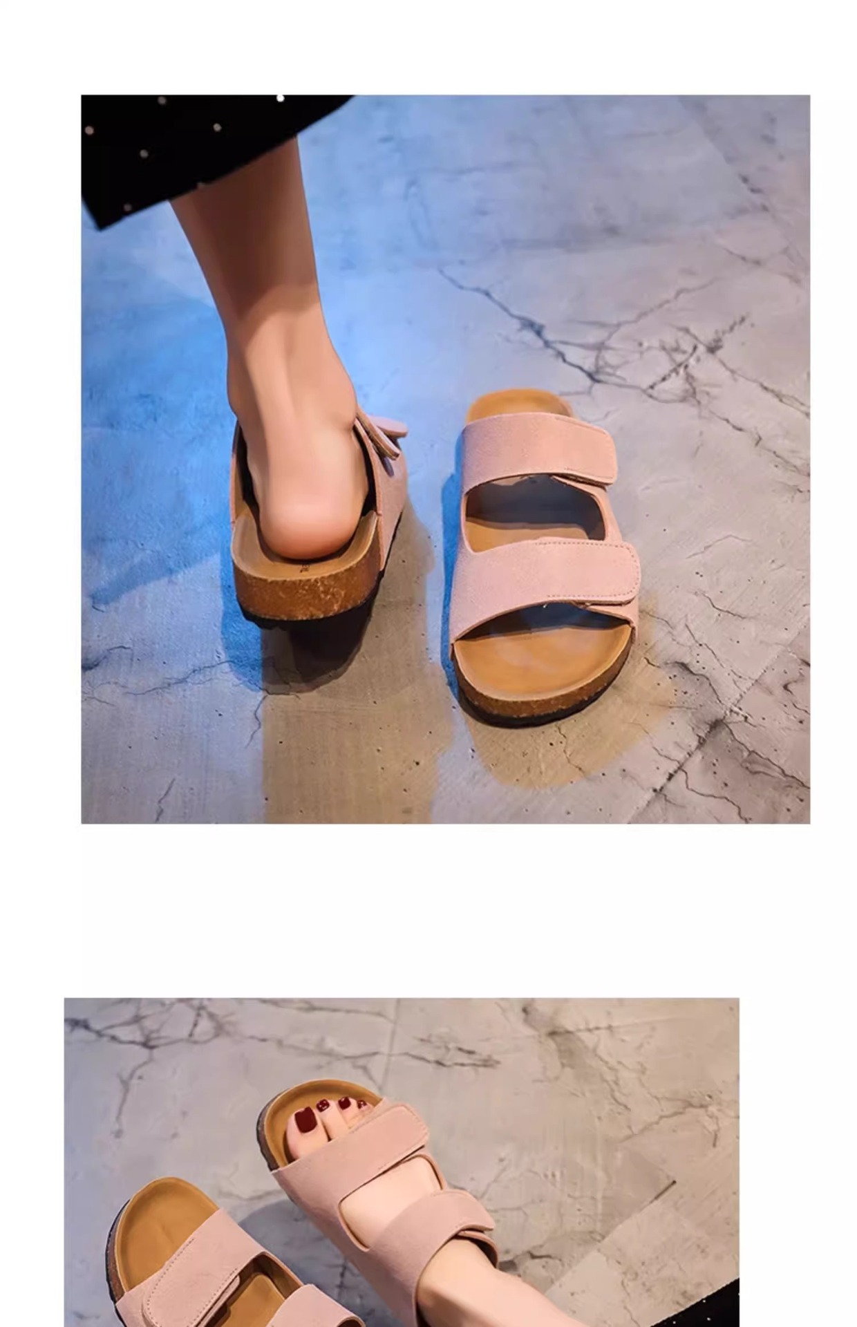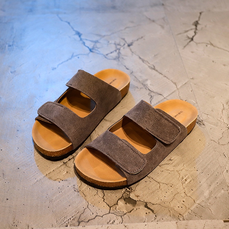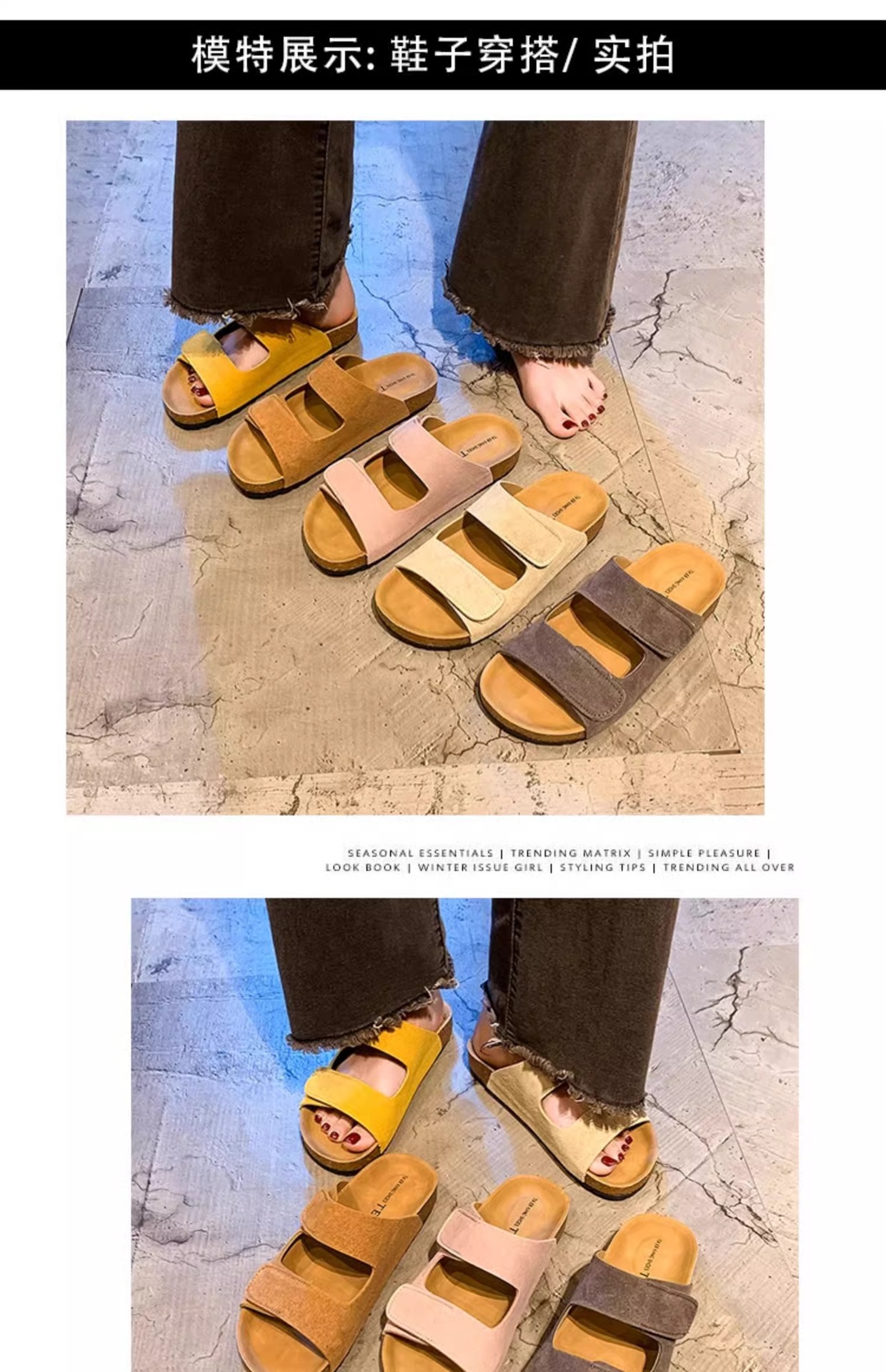 Cowhide Edition ~ 두꺼운 단독 Birkan 신발 슬리퍼 여성 여름 외부 착용 2025 새로운 해변 해변 한 단어 벨크로 샌들