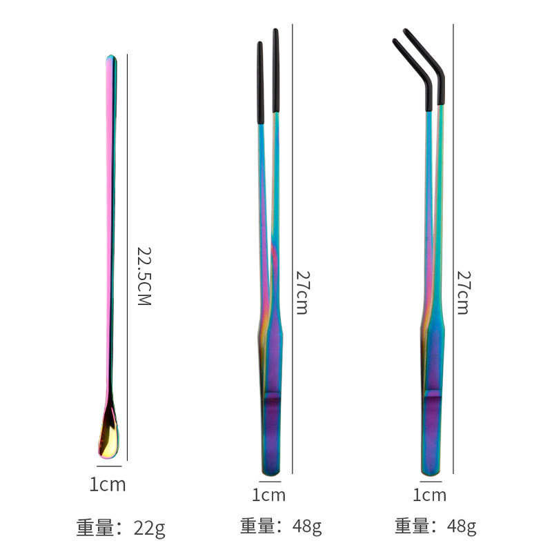 • 27cm 컬러 먹이 직선 클립(검은색 플라스틱 침지 헤드) + 27cm 컬러 먹이 곡선 클립(검은색 플라스틱 침지 헤드) + 22.5cm 컬러 먹이 스푼