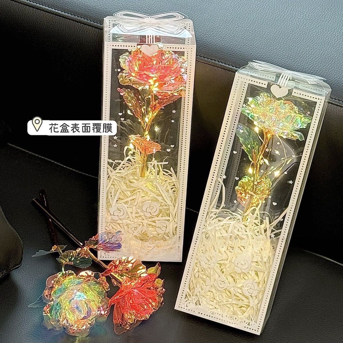 • 선물 상자 + 라피아 + LED 조명 스트립 - 화려한 핑크 장미 1개