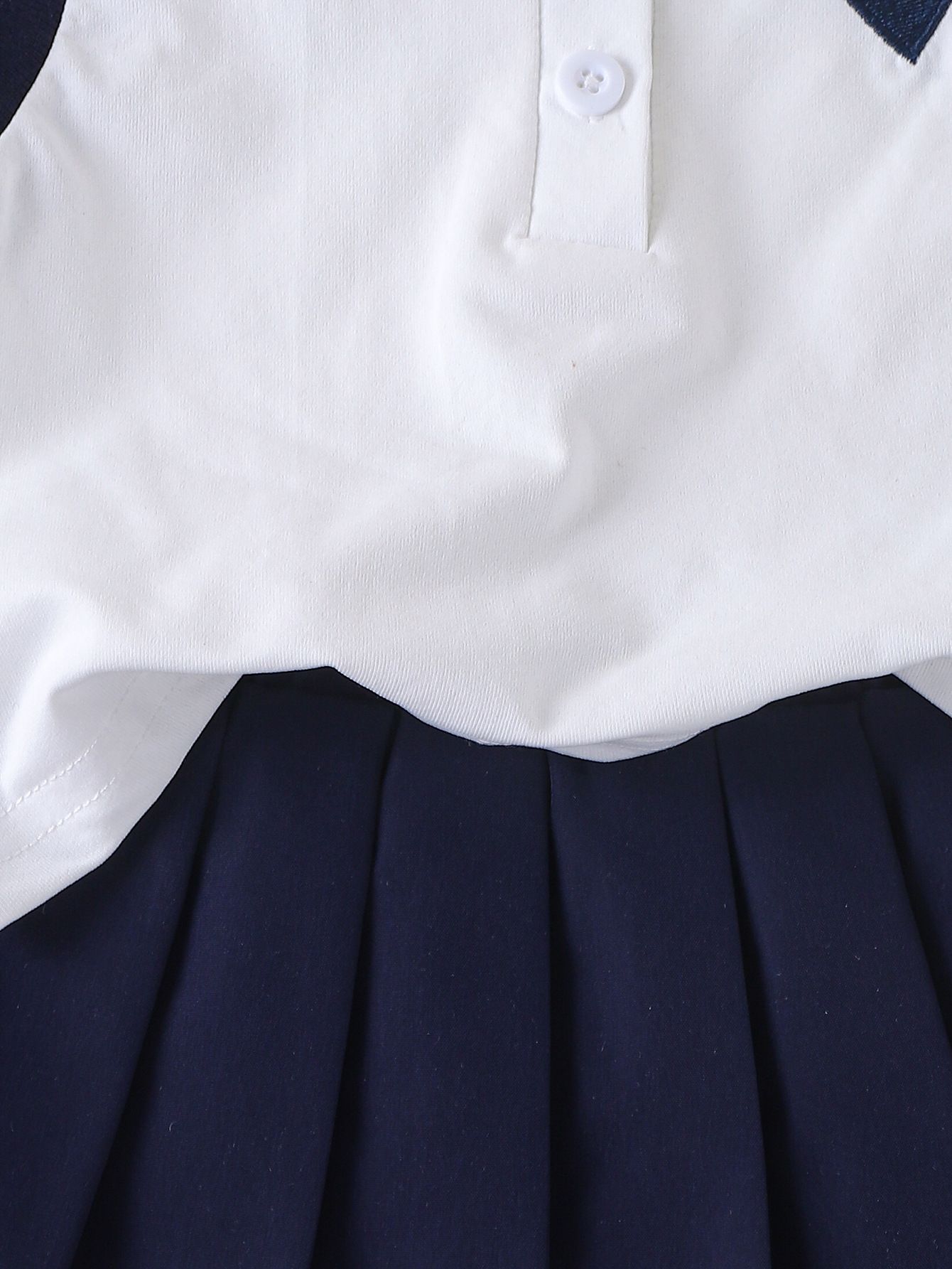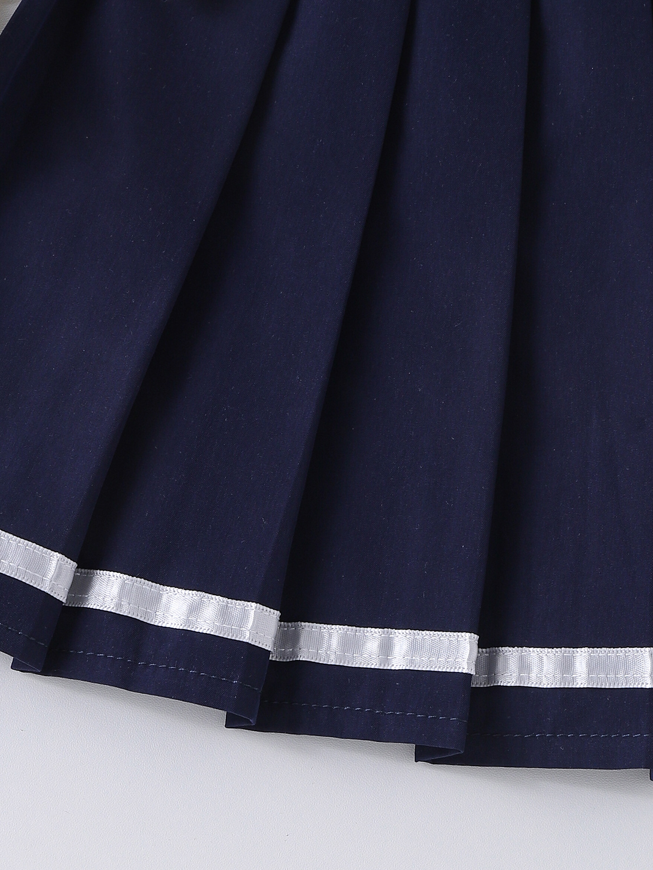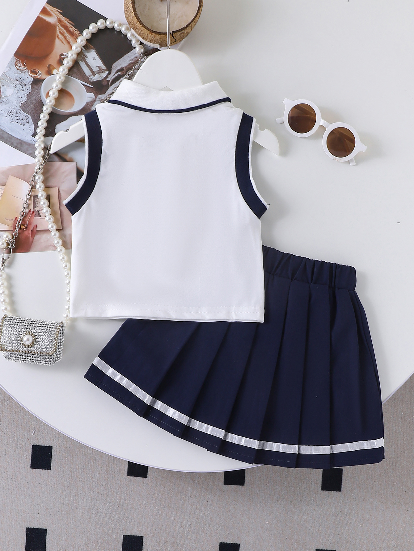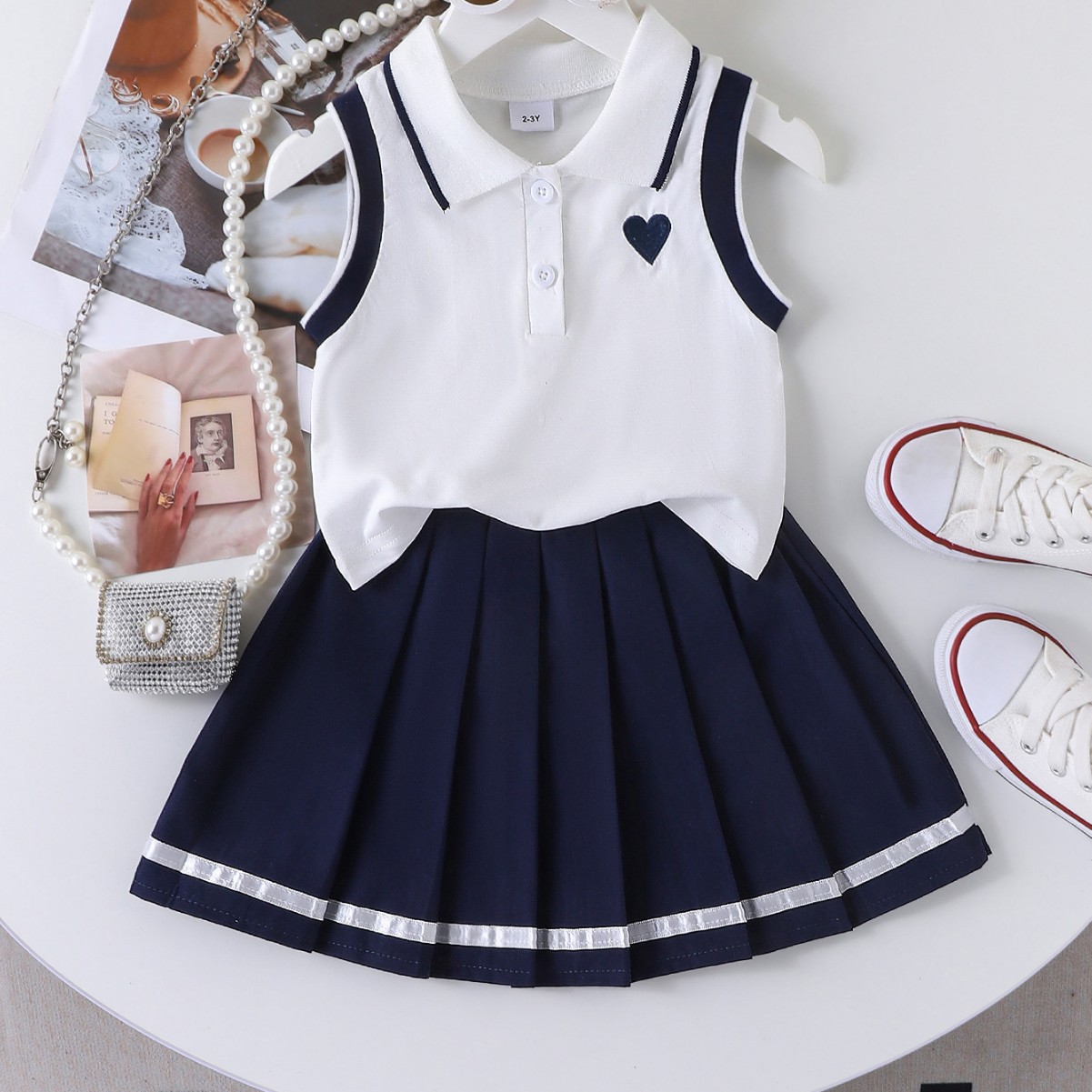 유럽과 미국의 여름 영국 스타일 여아 정장, 어린이 라펠 민소매 탑과 플리츠 스커트 투피스 세트, 공장 직접 판매