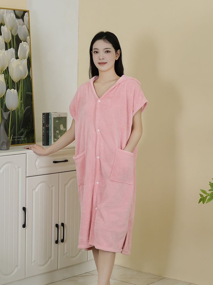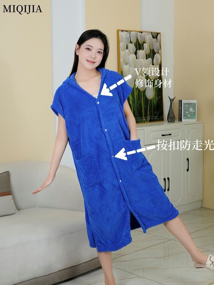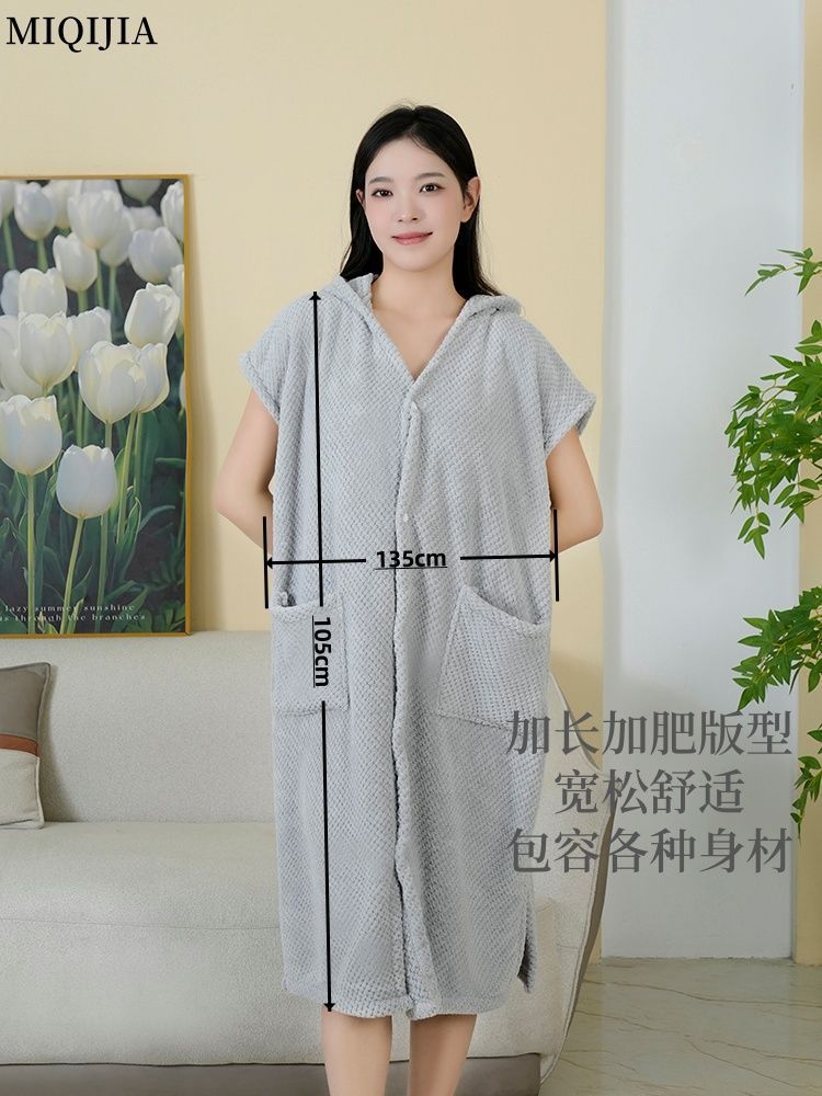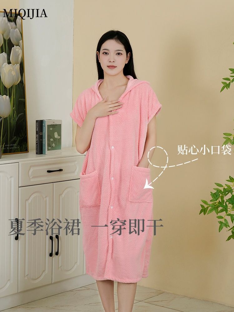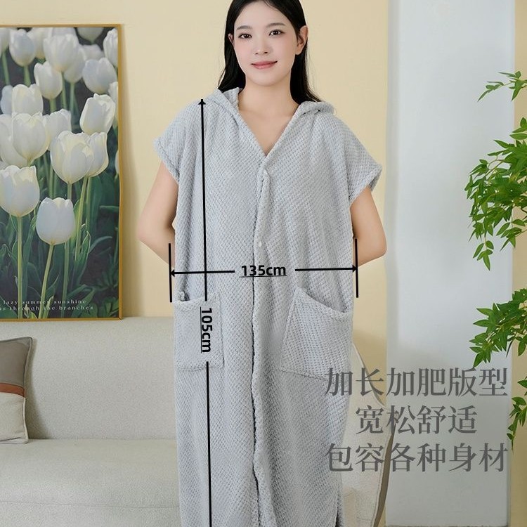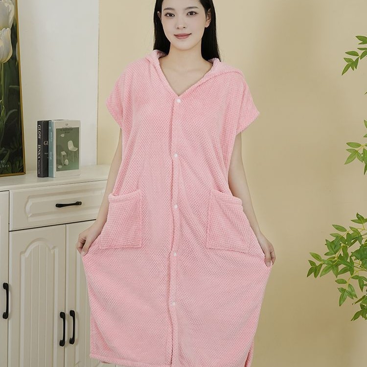 새로운 스타일 목욕 타올 망토 후드 목욕 스커트 목욕 가운 홈 짧은 소매 산호 양털 후드 스커트 착용스토어 가기