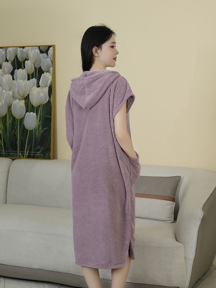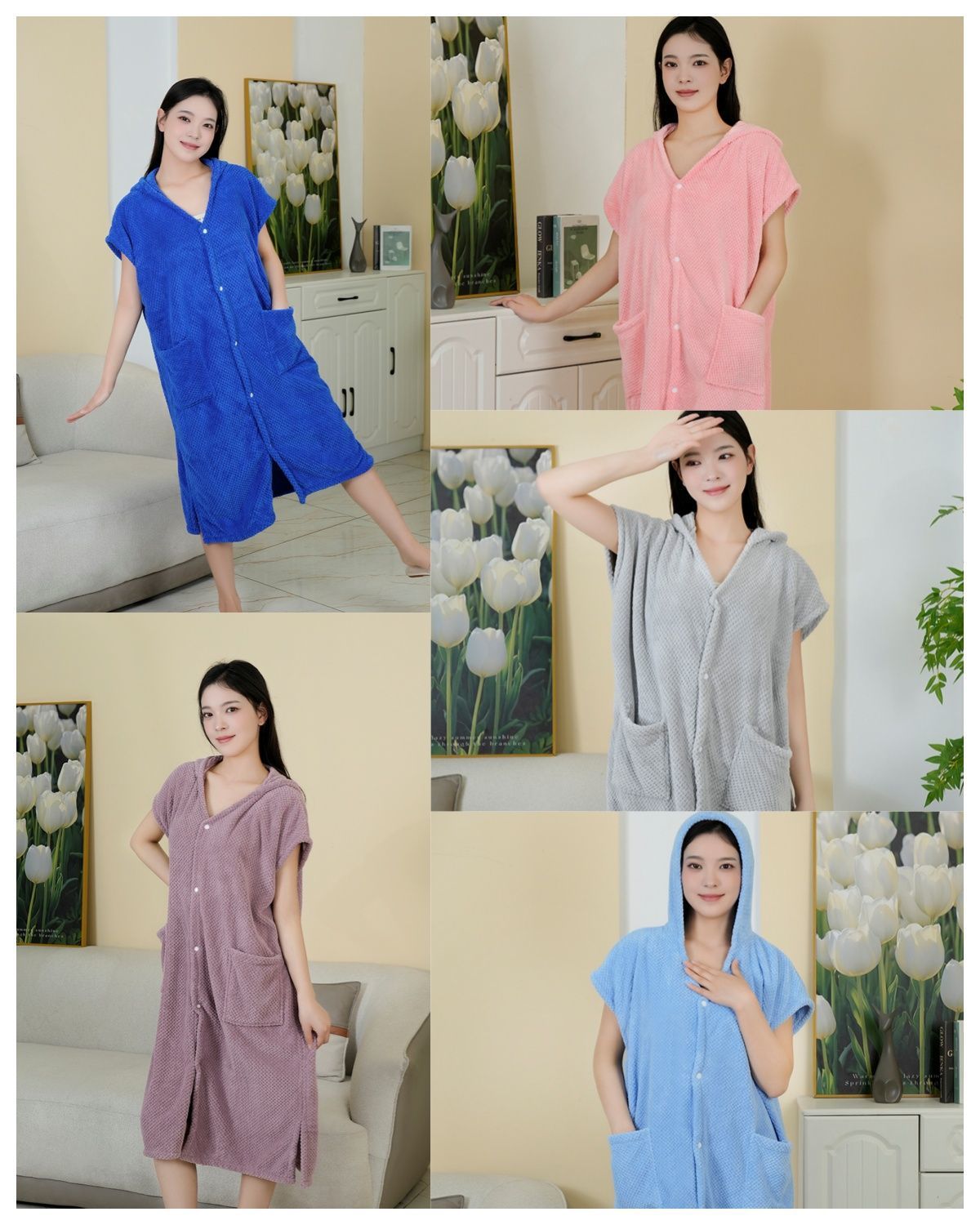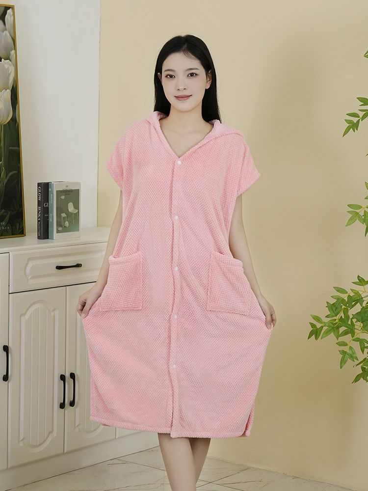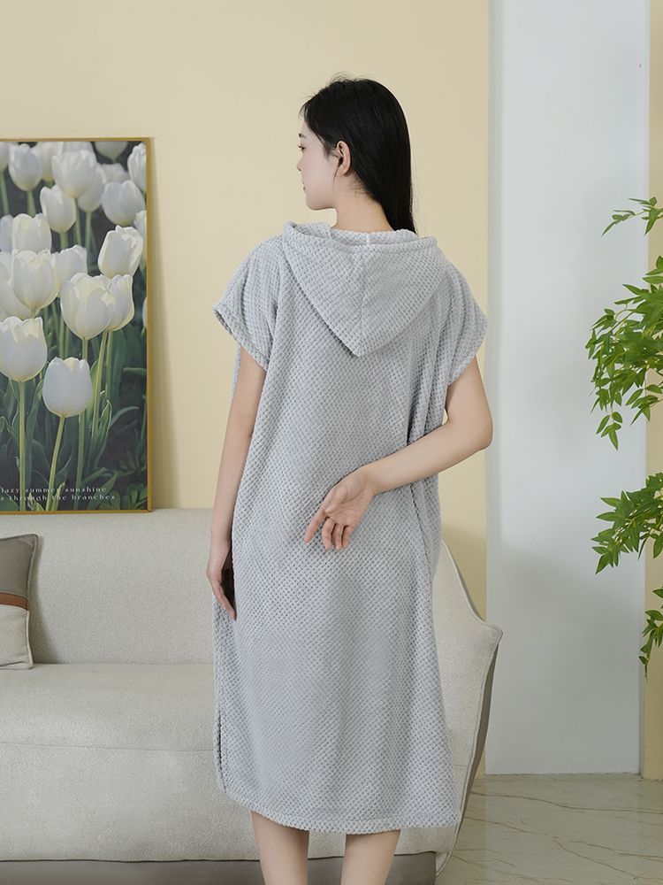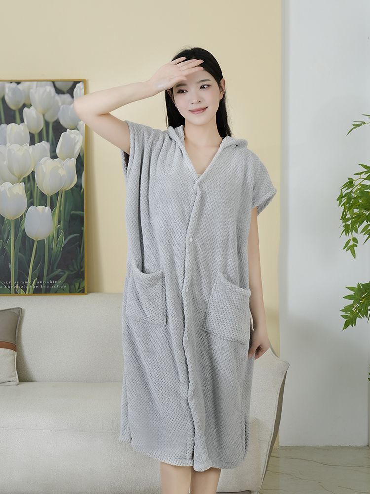 새로운 스타일 목욕 타올 망토 후드 목욕 스커트 목욕 가운 홈 짧은 소매 산호 양털 후드 스커트 착용스토어 가기