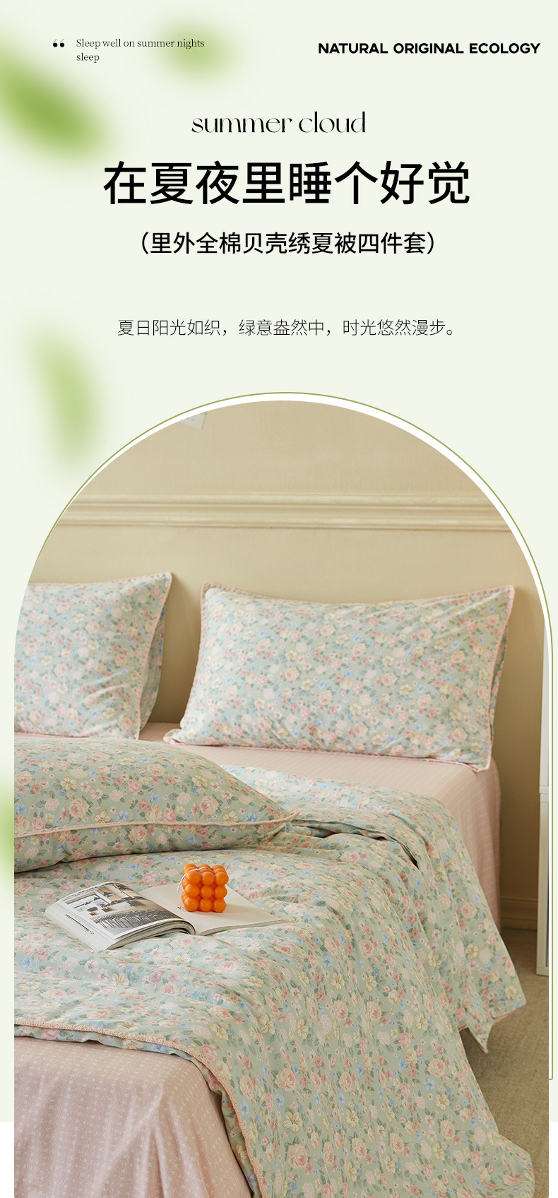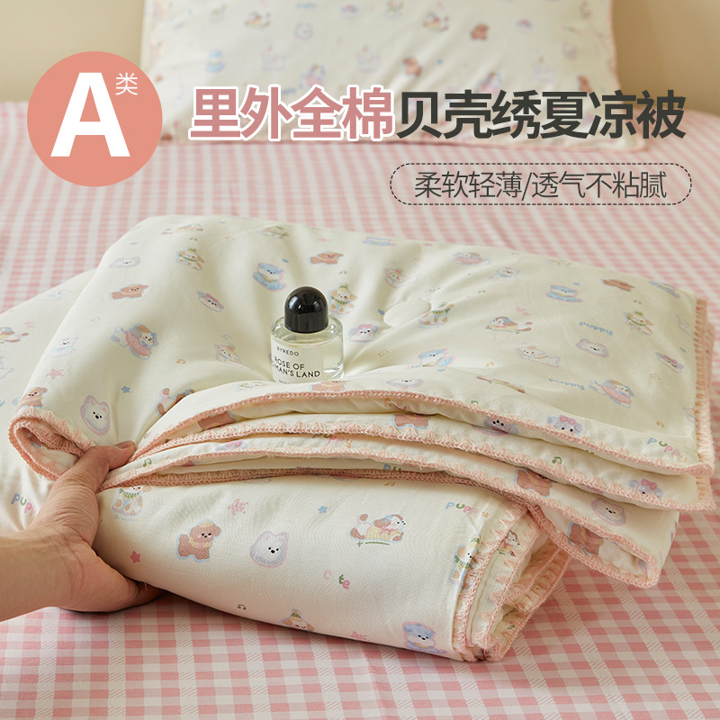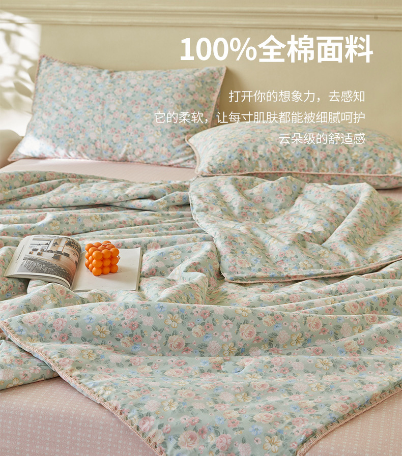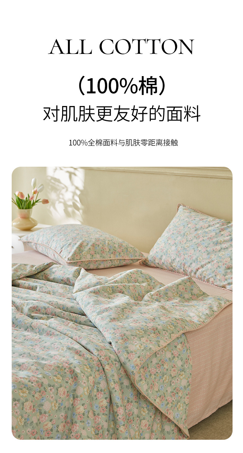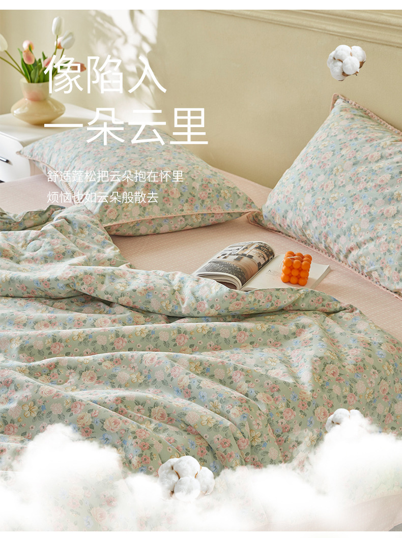 면화 외부 신장 면화 여름 이불 4 종 세트 면화 나체 수면 기계 세탁 가능한 에어컨 이불 인쇄 여름 이불스토어 가기