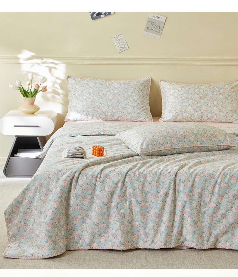 면화 외부 신장 면화 여름 이불 4 종 세트 면화 나체 수면 기계 세탁 가능한 에어컨 이불 인쇄 여름 이불
