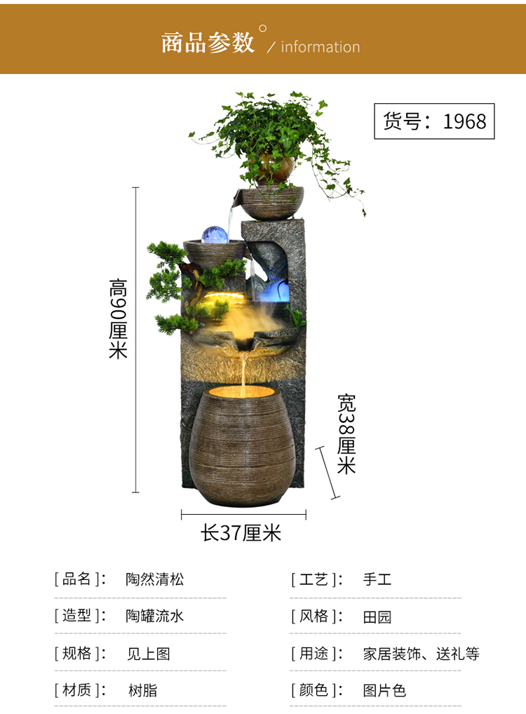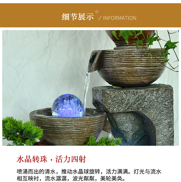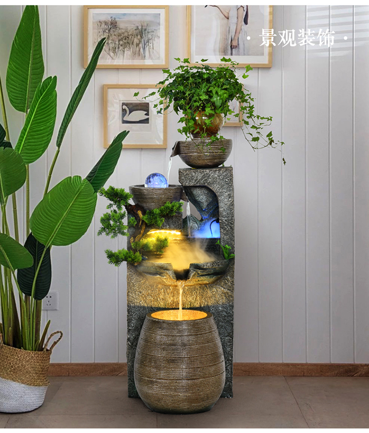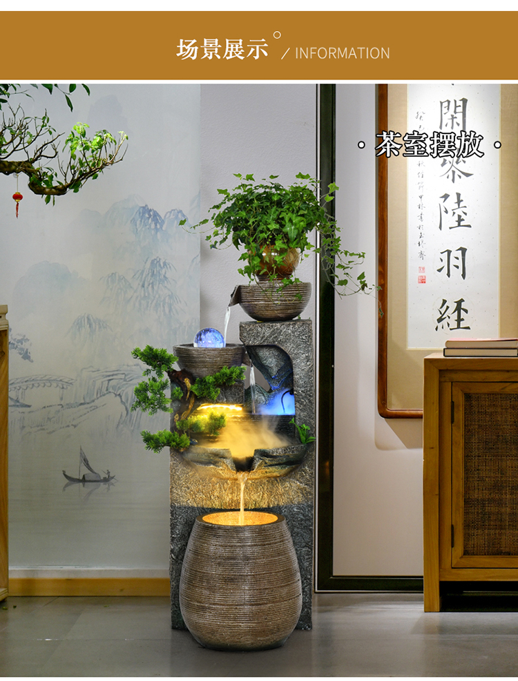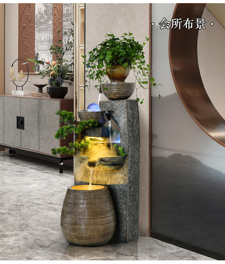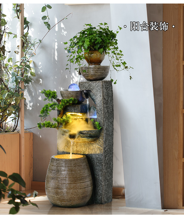 행운의 물 분수 장식품 순환 물 거실 실내 바닥 안뜰 발코니 조경 바위 분수 풍경스토어 가기