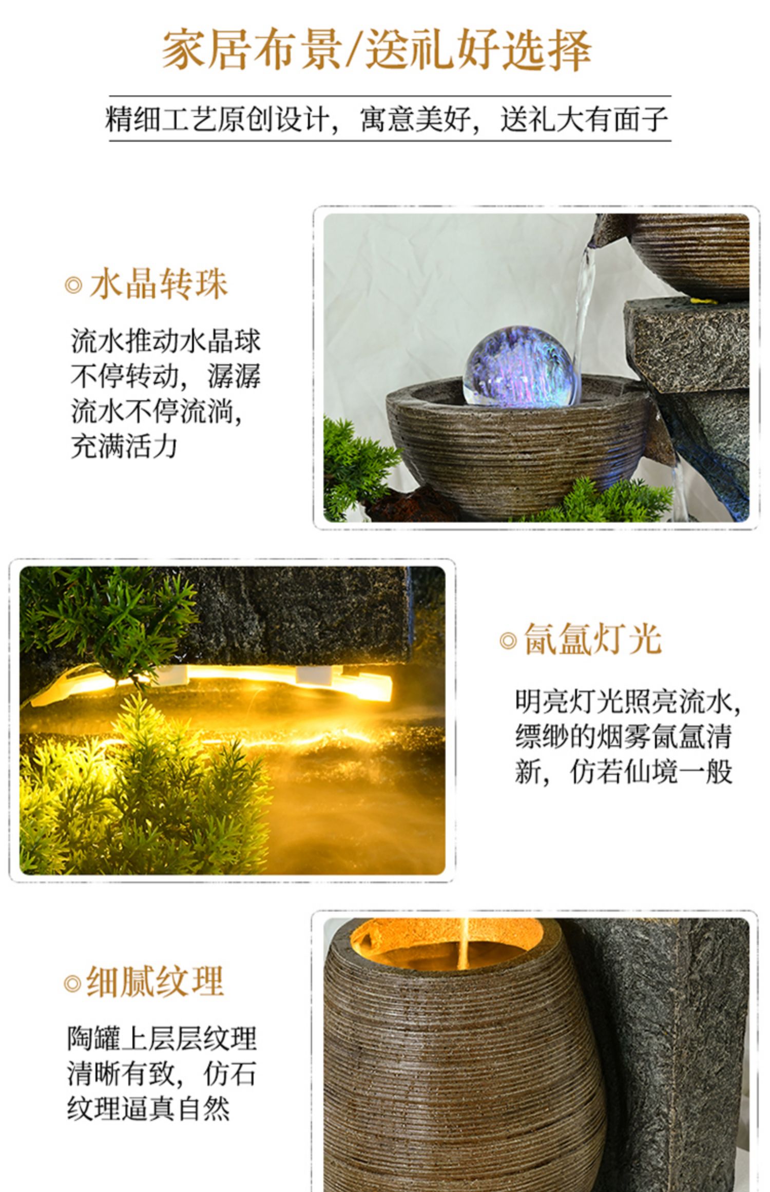 행운의 물 분수 장식품 순환 물 거실 실내 바닥 안뜰 발코니 조경 바위 분수 풍경