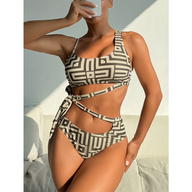 2025 새로운 유럽과 미국의 대외 무역 크로스 보드 레트로 허리 백리스 섹시한 크로스 슬리밍 수영복 여성 비키니 도매스토어 가기