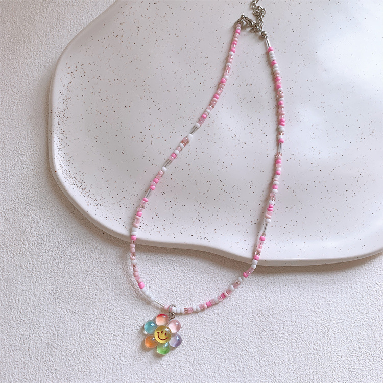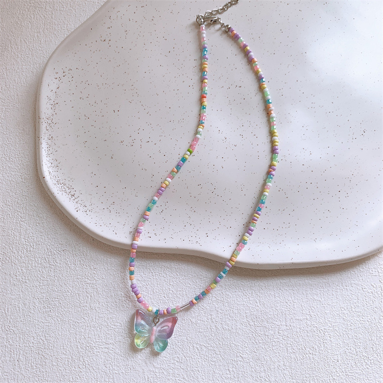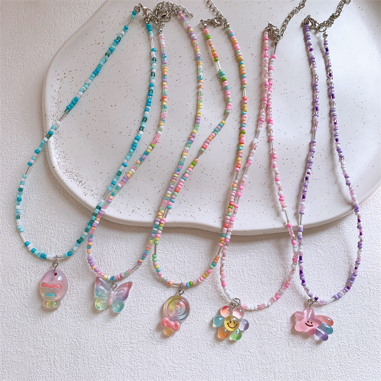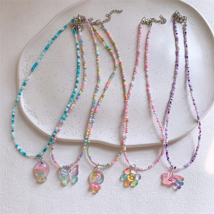 어린이 다채로운 구슬 목걸이 어린애 같은 귀여운 만화 나비 꽃 펜던트 쇄골 체인 달콤한 소녀 심장 목걸이