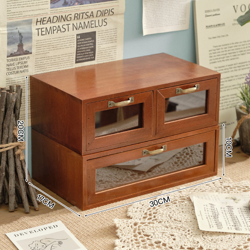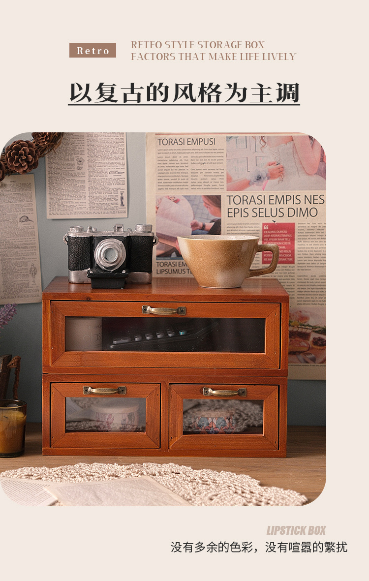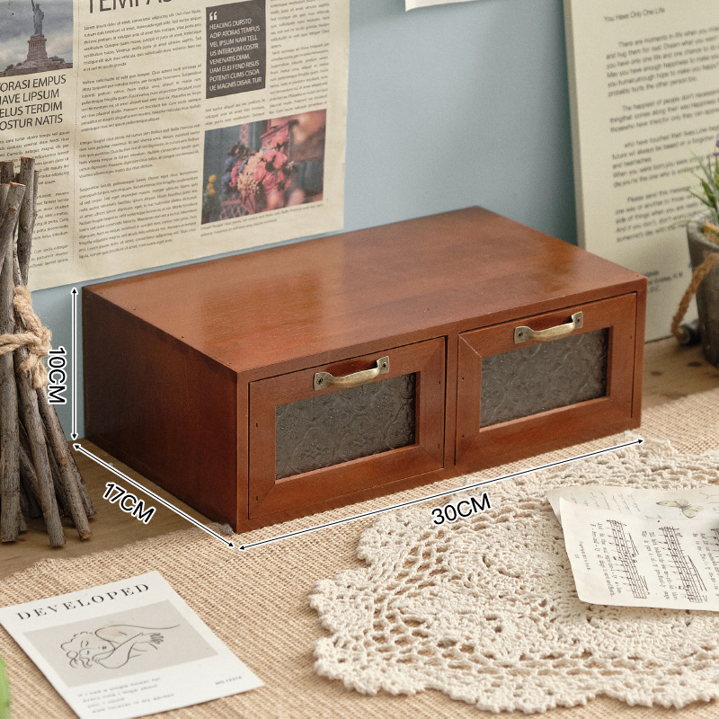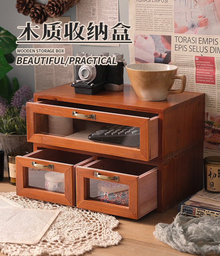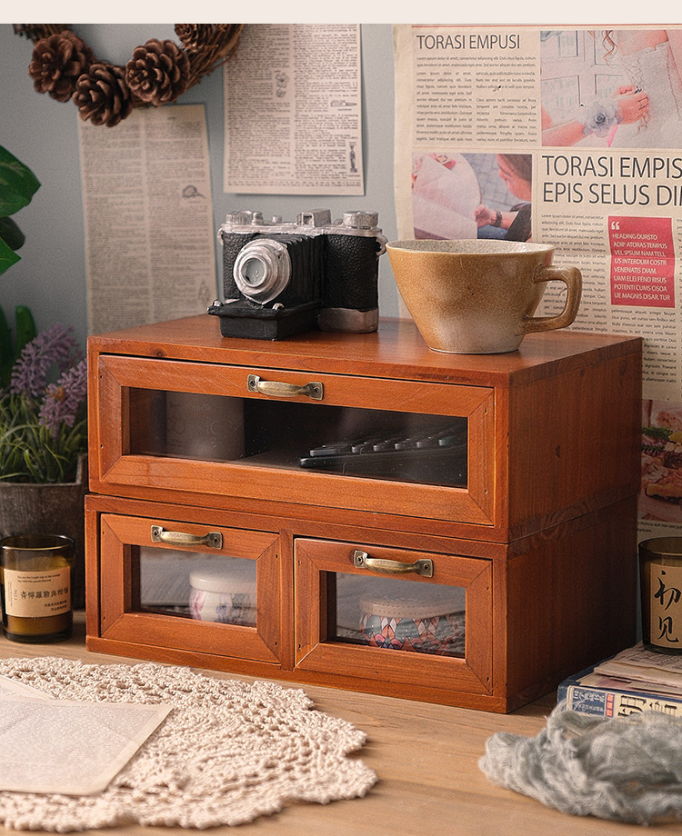 책상 빈티지 스토리지 박스 데스크탑 화장품 캐비닛 나무 컴퓨터 높은 랙 사무실 기숙사 데스크탑 랙스토어 가기