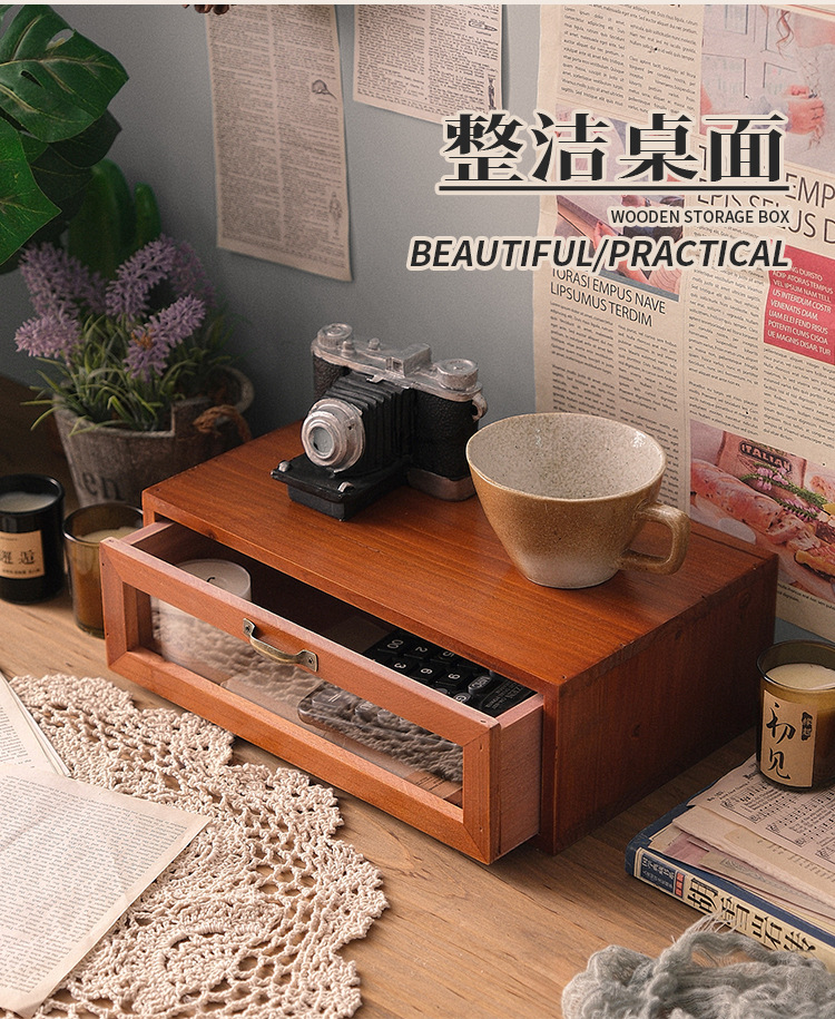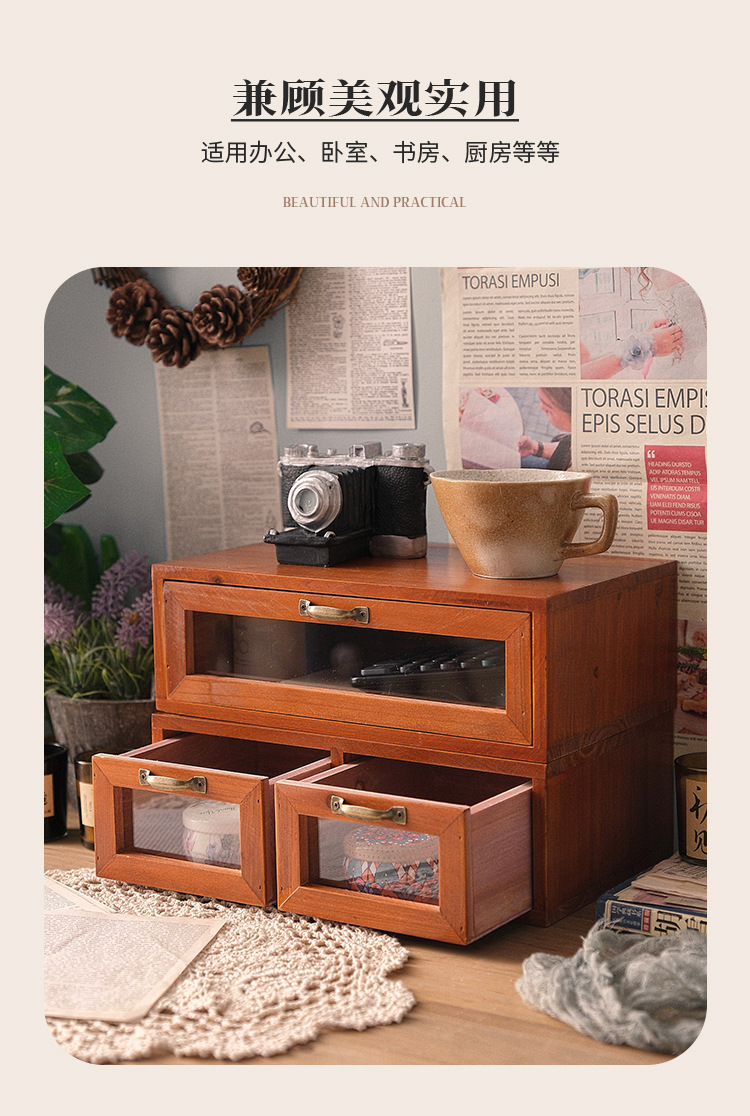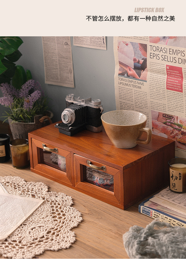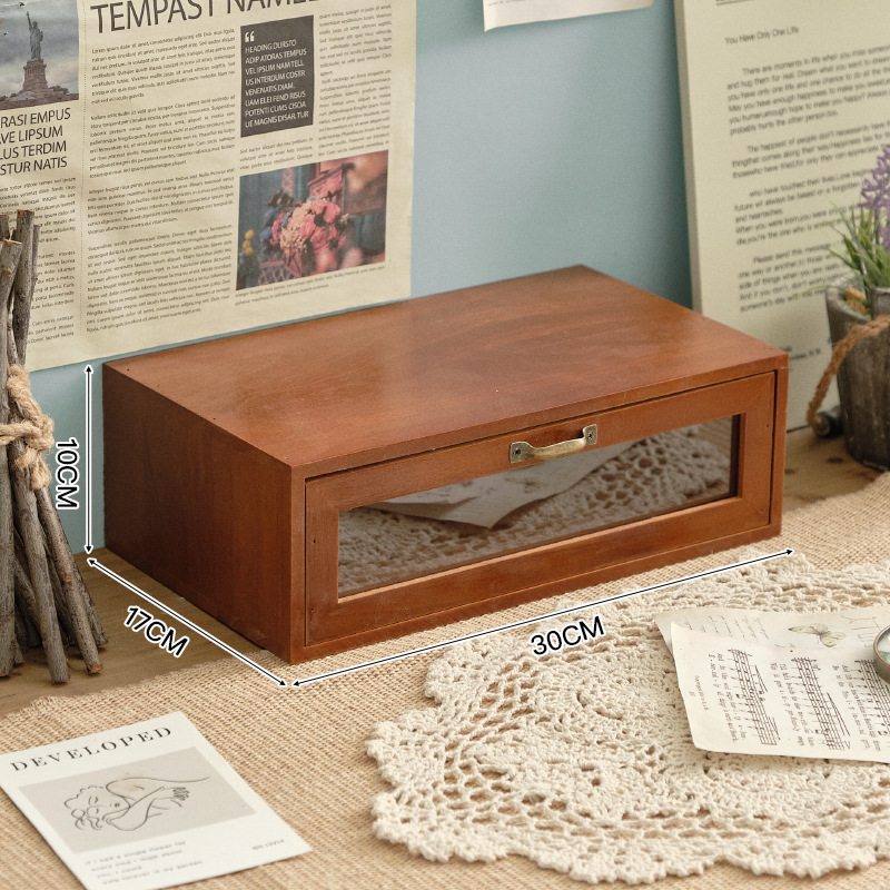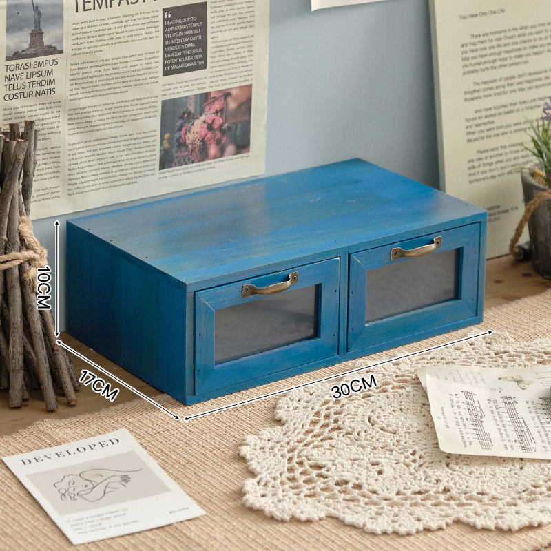책상 빈티지 스토리지 박스 데스크탑 화장품 캐비닛 나무 컴퓨터 높은 랙 사무실 기숙사 데스크탑 랙스토어 가기