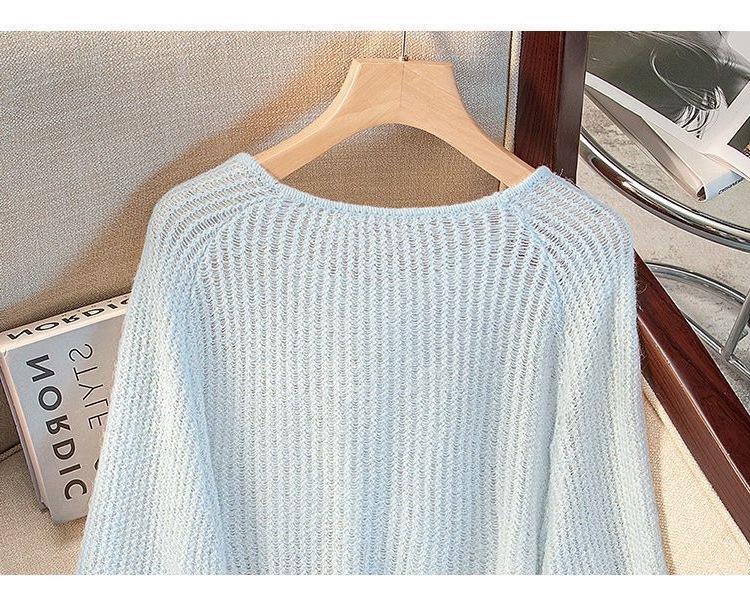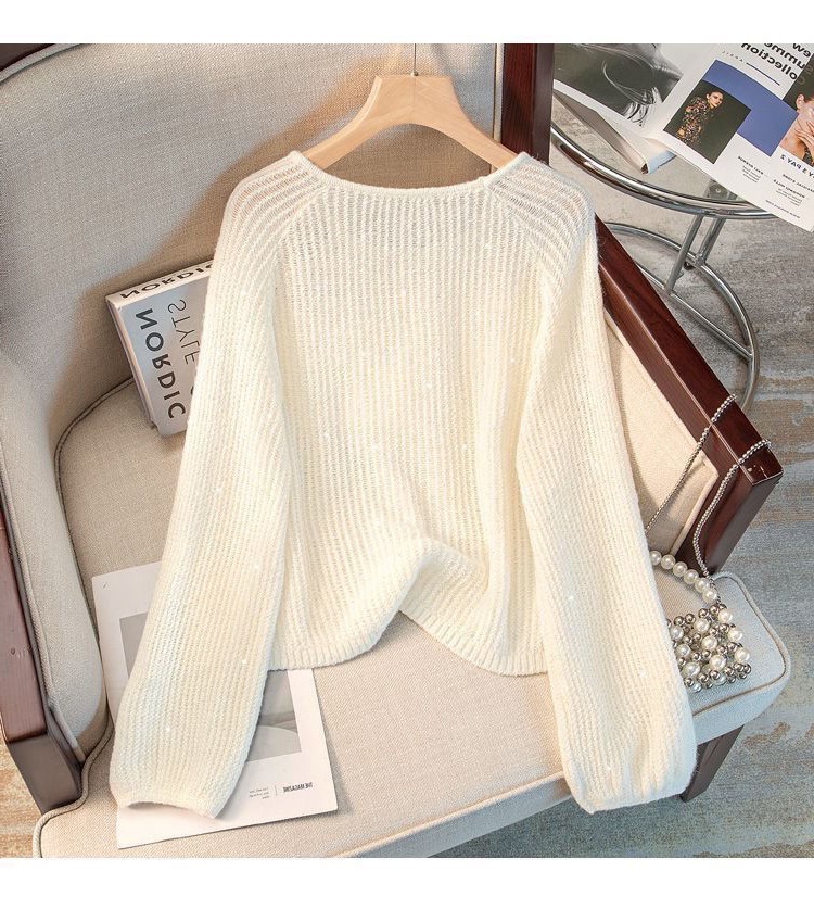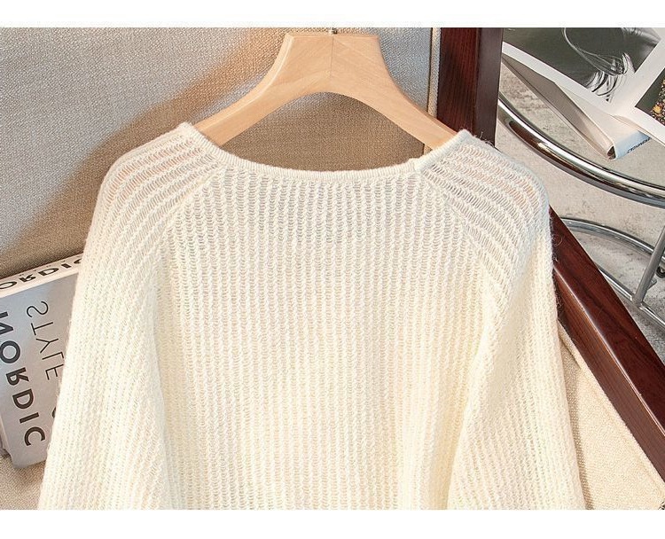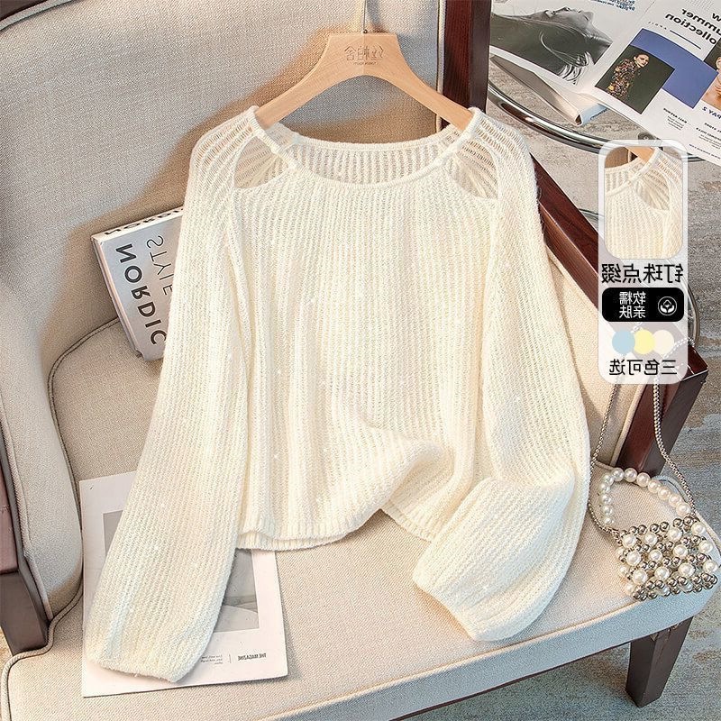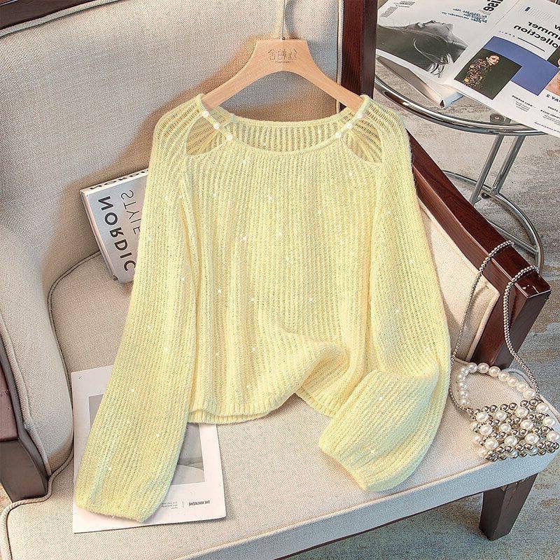 2025 새로운 여성의 봄 새 구슬 긴 소매 우아한 풀오버 솔리드 컬러 얇은 할로우 크루 넥 스웨터 탑스토어 가기