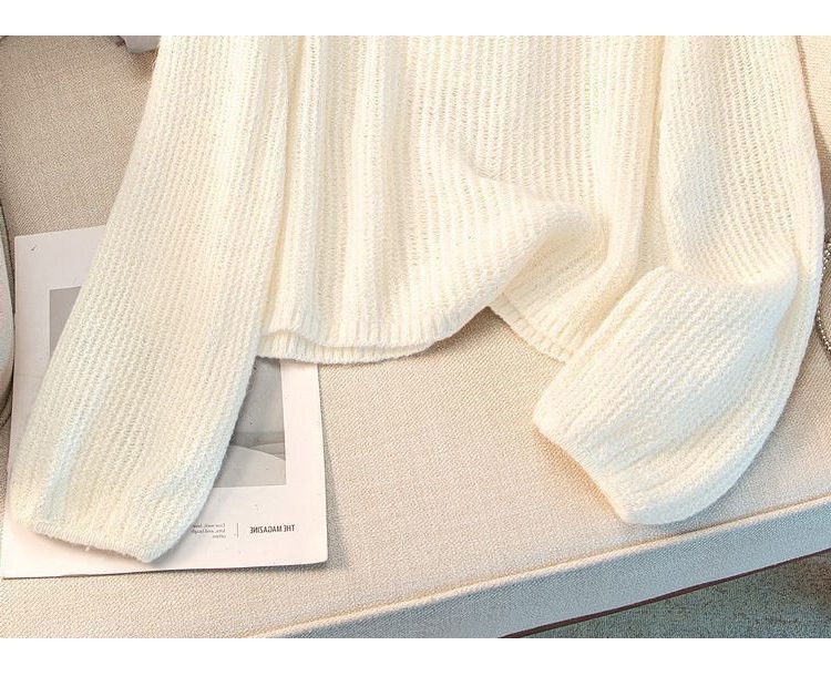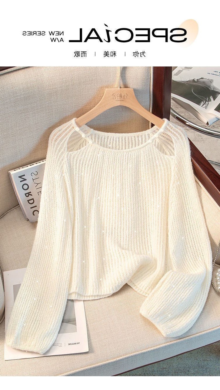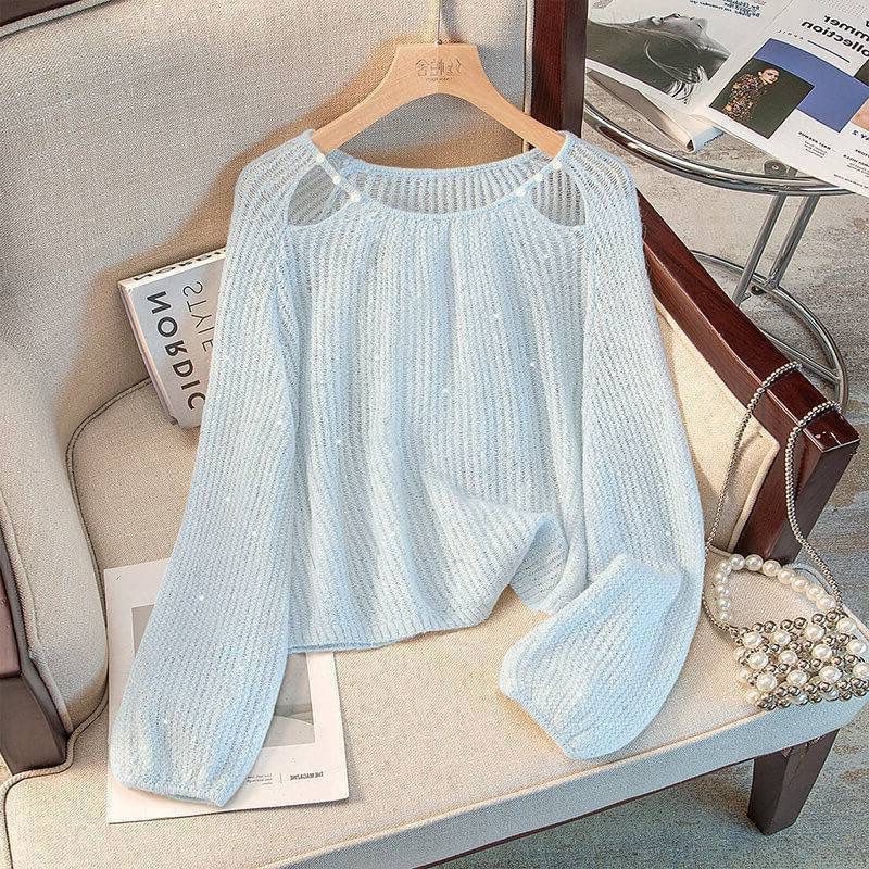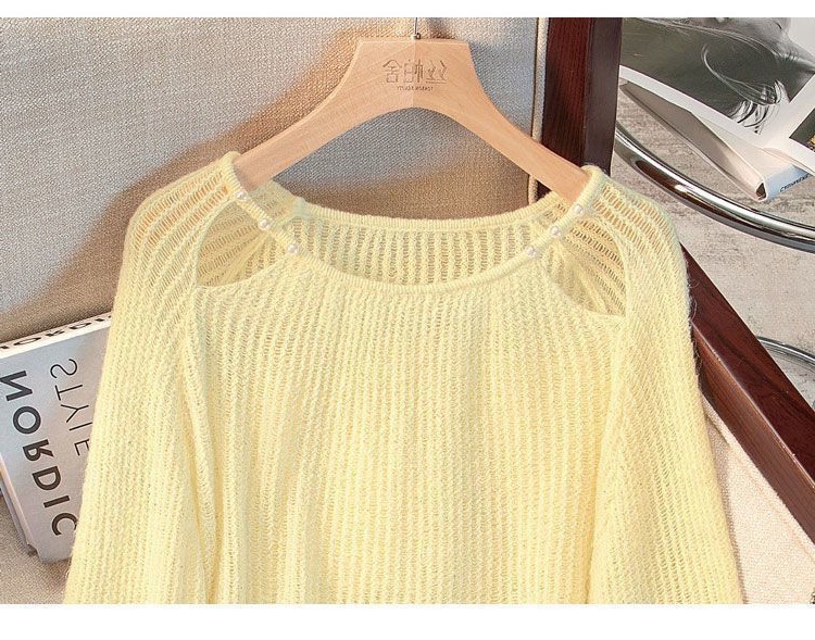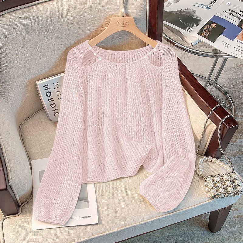 2025 새로운 여성의 봄 새 구슬 긴 소매 우아한 풀오버 솔리드 컬러 얇은 할로우 크루 넥 스웨터 탑