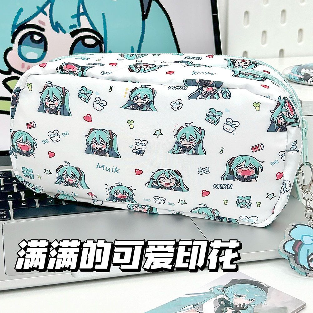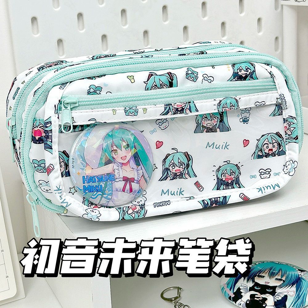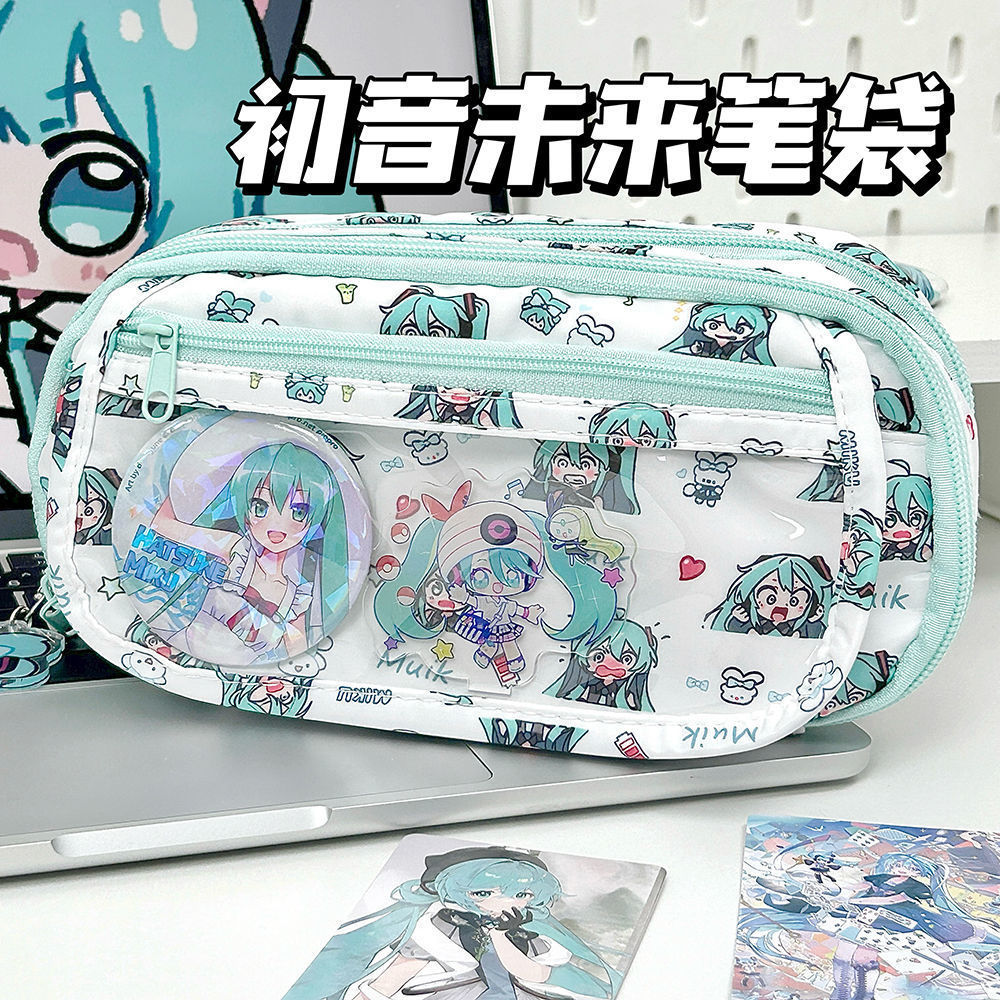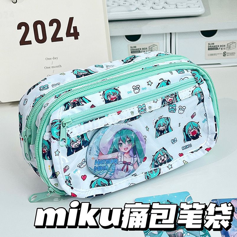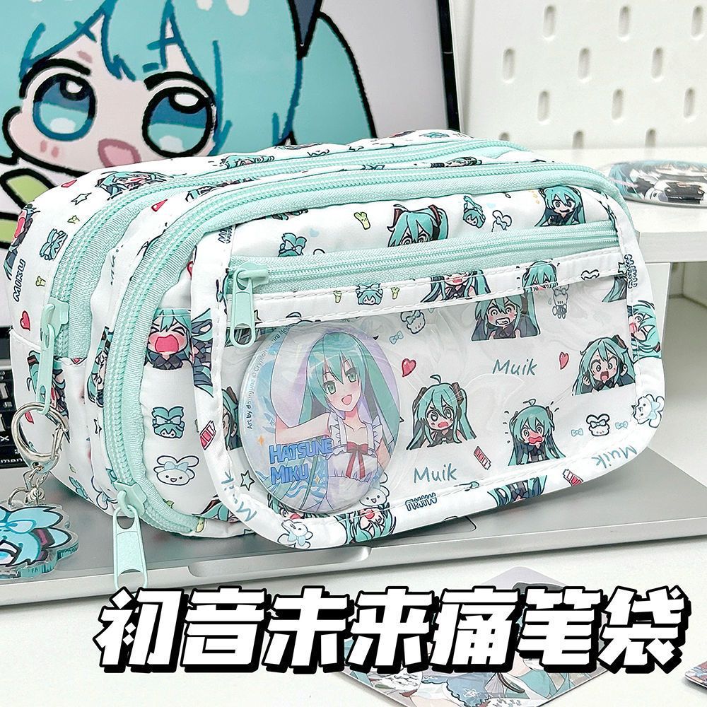 귀여운 하츠네 미쿠 통증 가방 연필 가방 ins 소녀 하트 고가치 대용량 다층 학생 문구 보관 가방