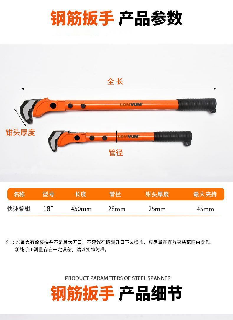 [재고 있음] Longyun 철근 렌치, 파이프 펜치, 다용도 수도관 펜치, 다기능 철근 슬리브 조인트 이벤트스토어 가기