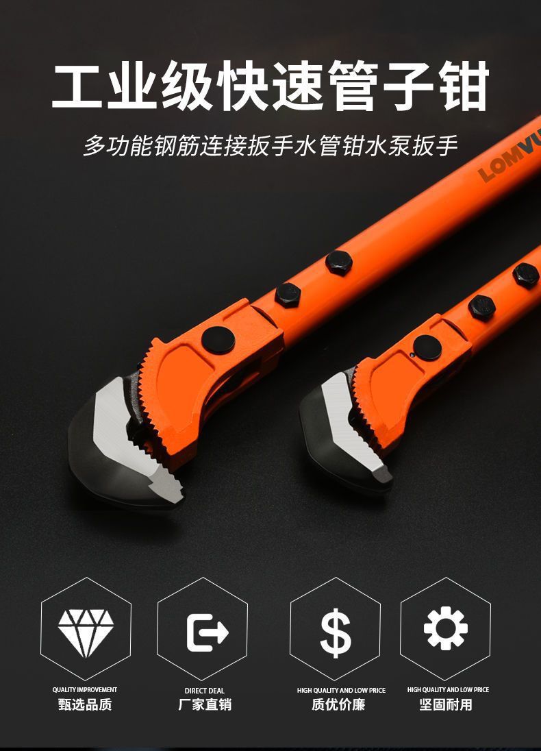 [재고 있음] Longyun 철근 렌치, 파이프 펜치, 다용도 수도관 펜치, 다기능 철근 슬리브 조인트 이벤트