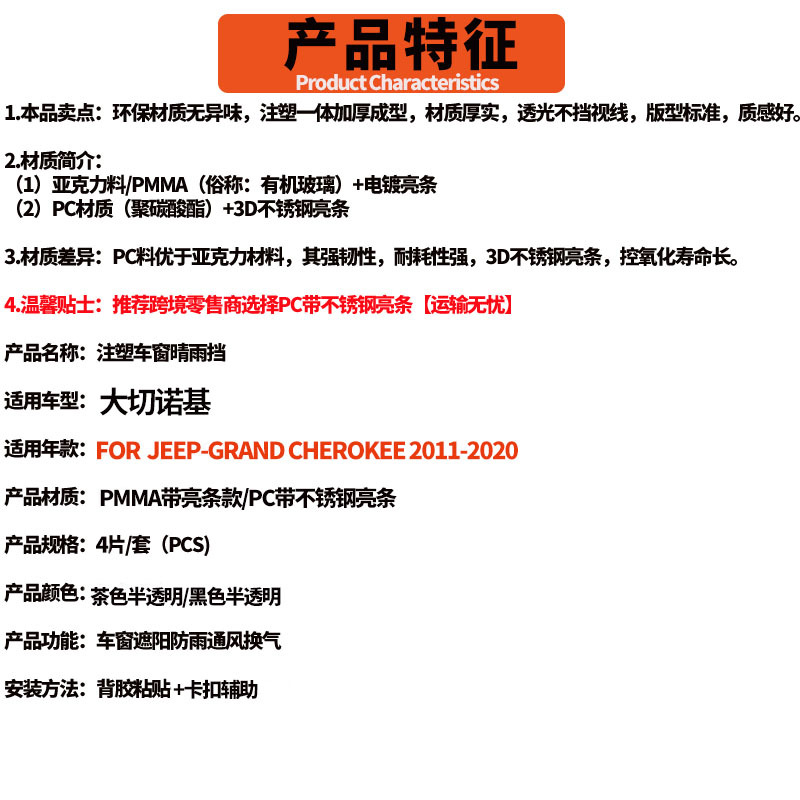 • JEEP GRAND CHEROKEE WK2 2011-2020 PS 실버 브라이트 스트립 창 비 또는 빛 방패 포함