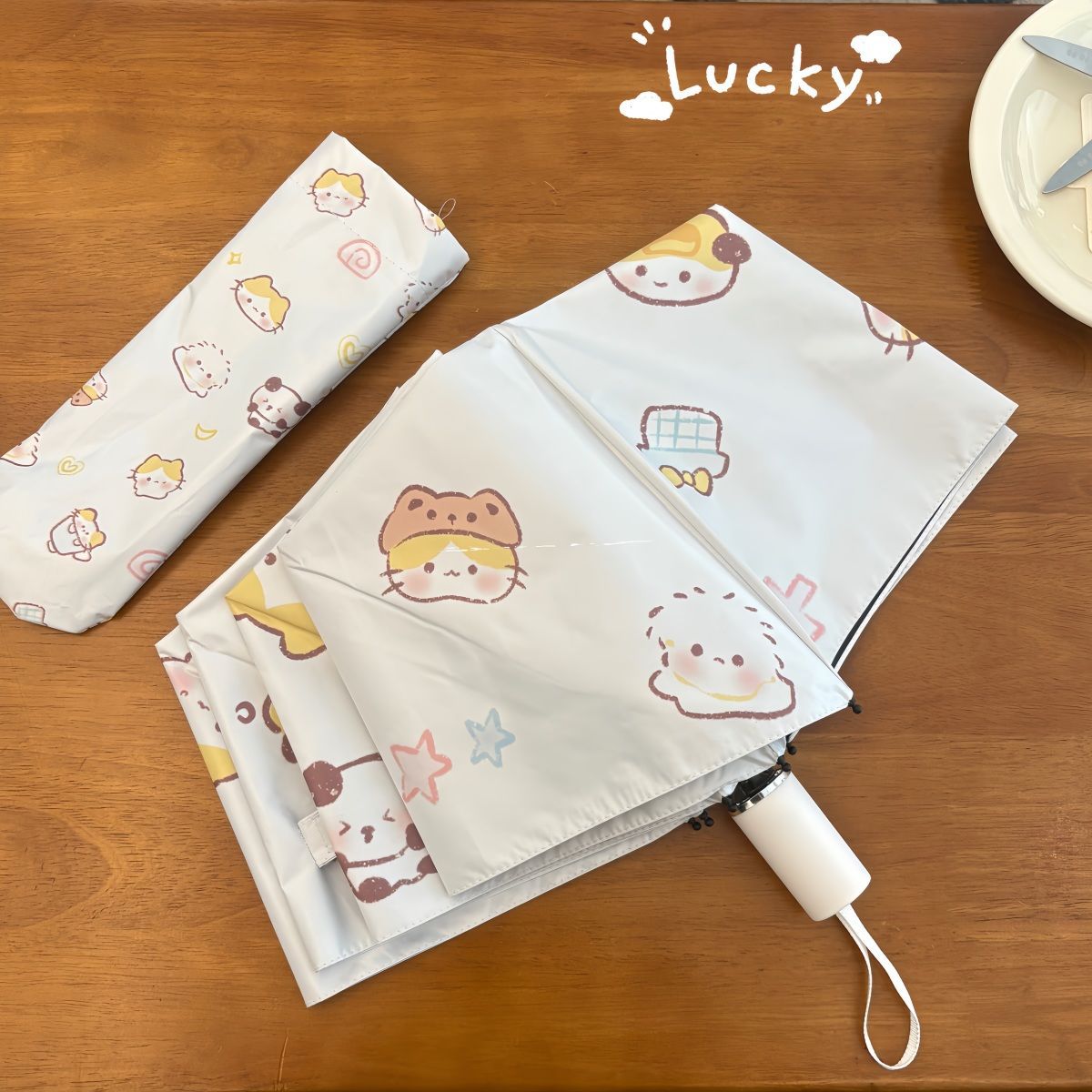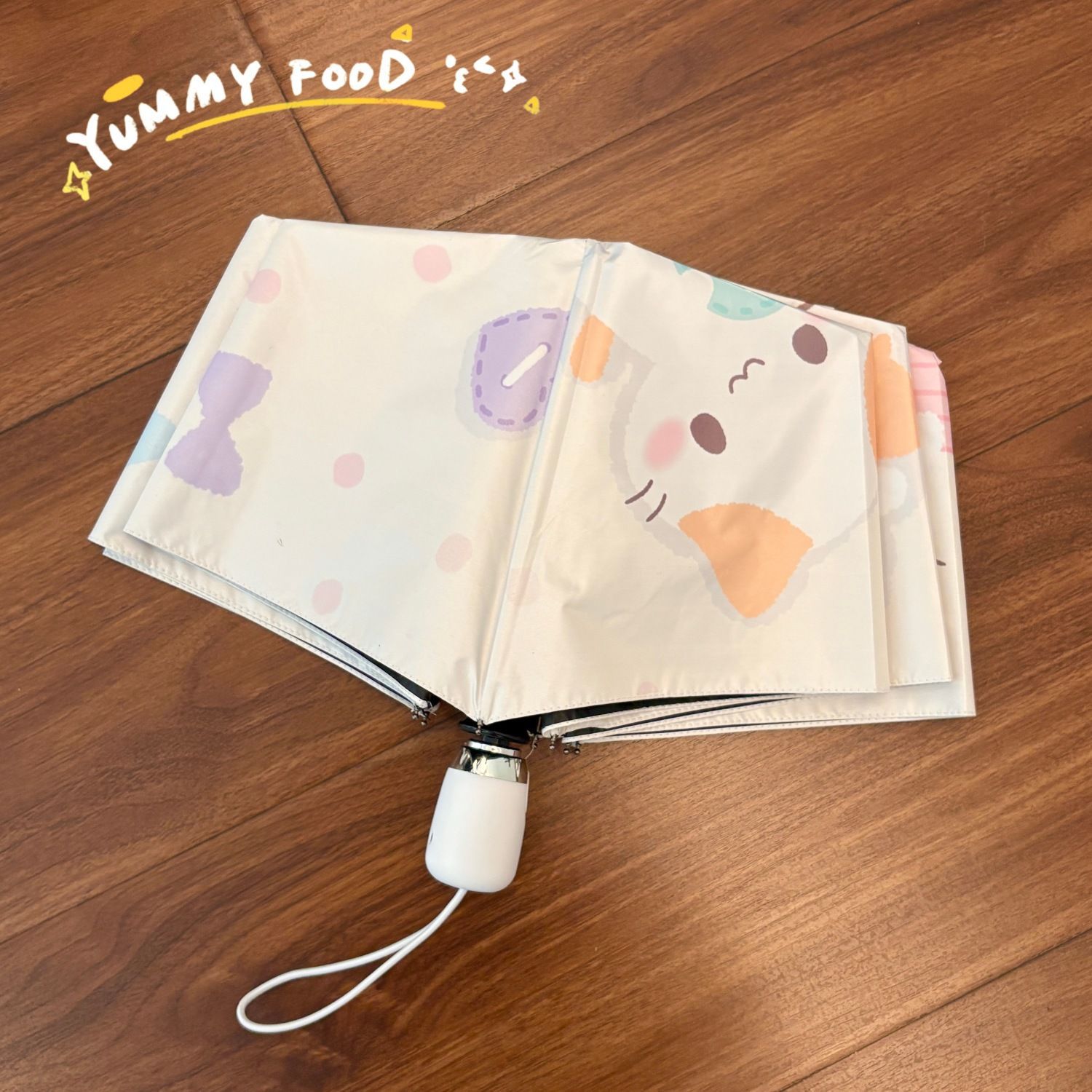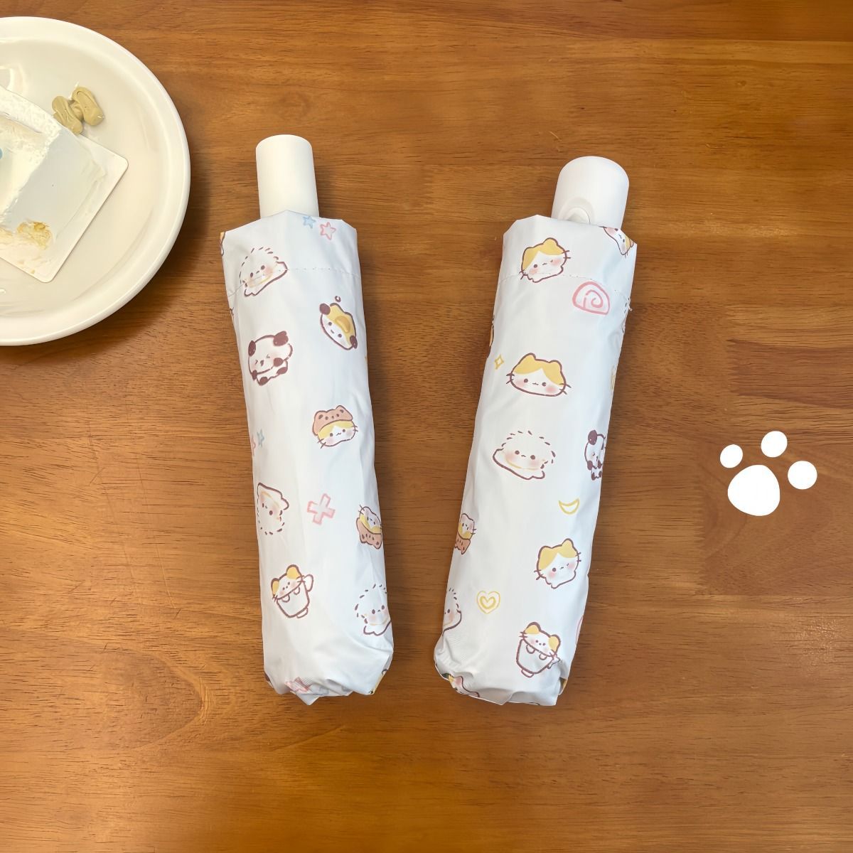 마시멜로 고양이 완전 자동 태양 우산 검은 고무 맑고 비 이중 목적 선 스크린 자외선 우산 접히는 햇빛 우산