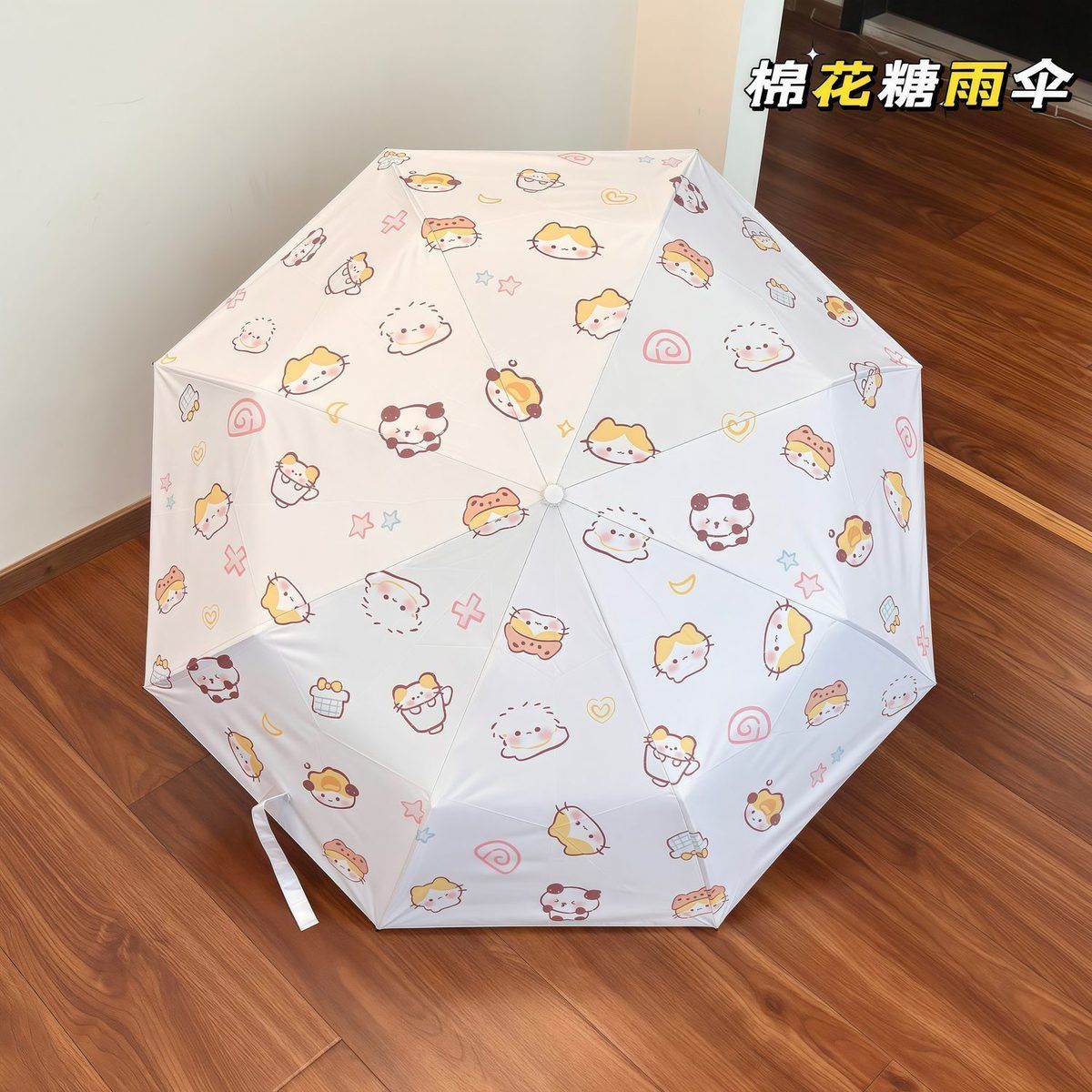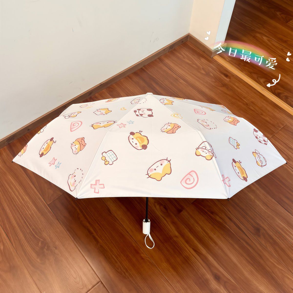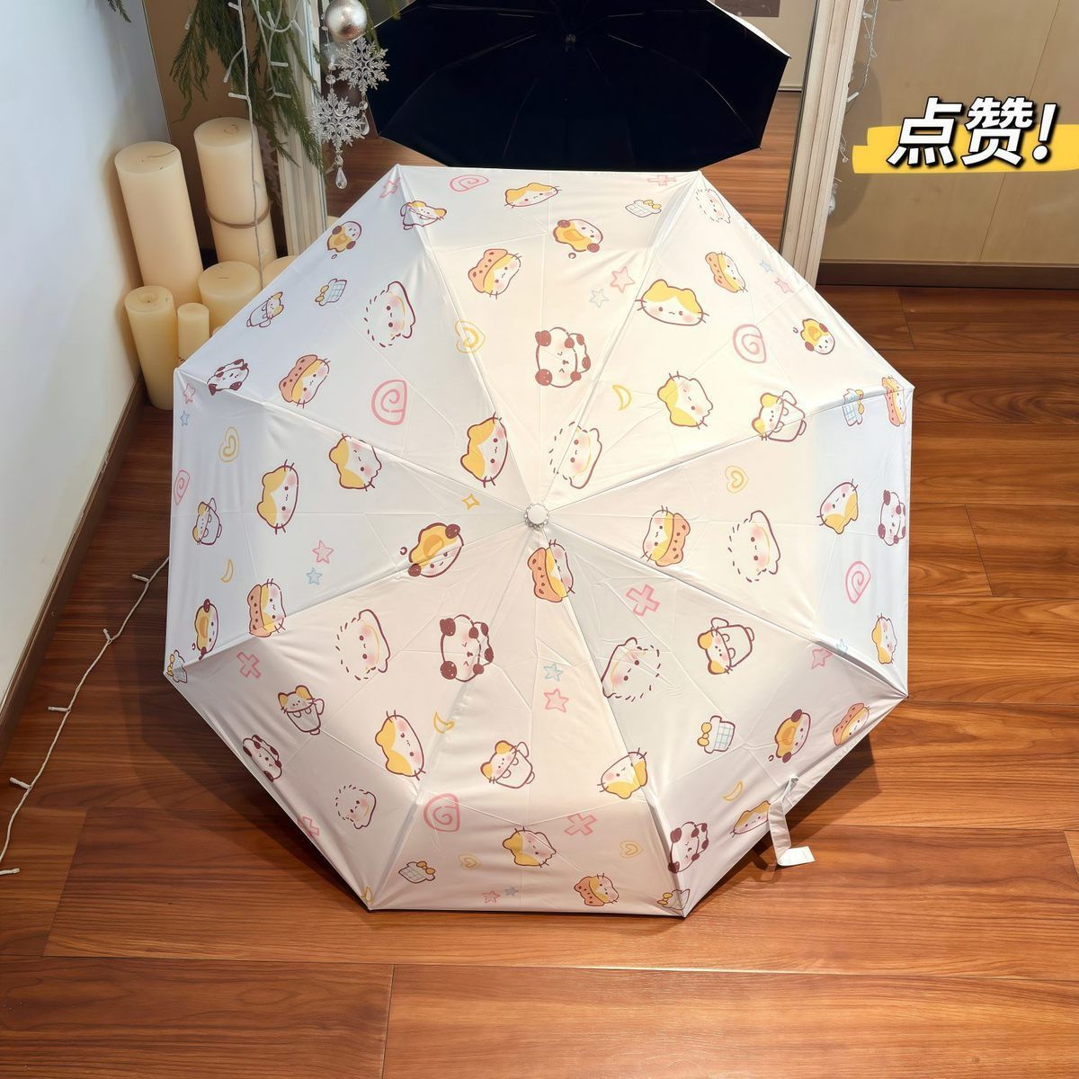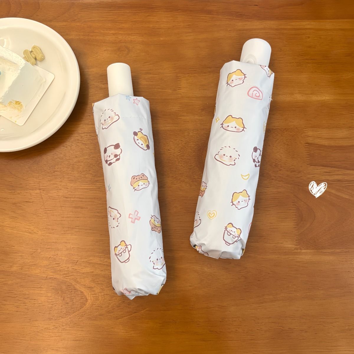 마시멜로 고양이 완전 자동 태양 우산 검은 고무 맑고 비 이중 목적 선 스크린 자외선 우산 접히는 햇빛 우산