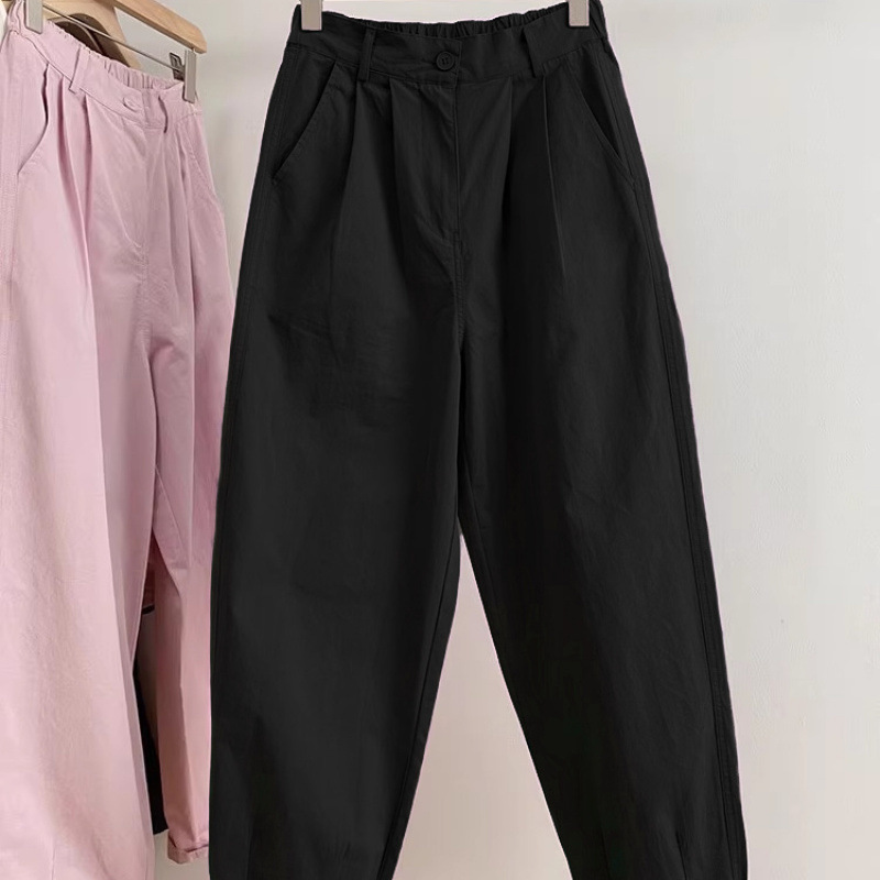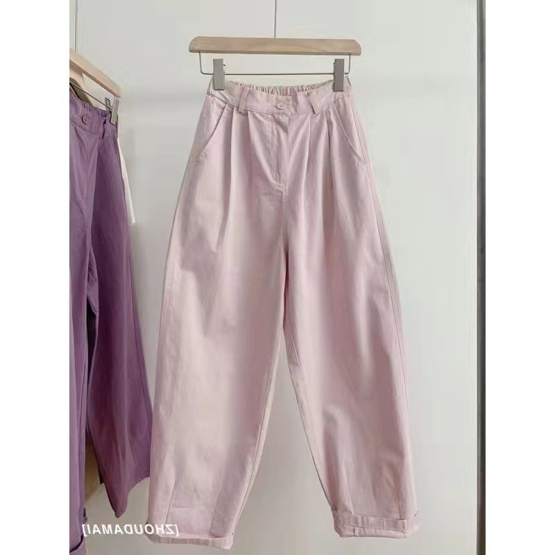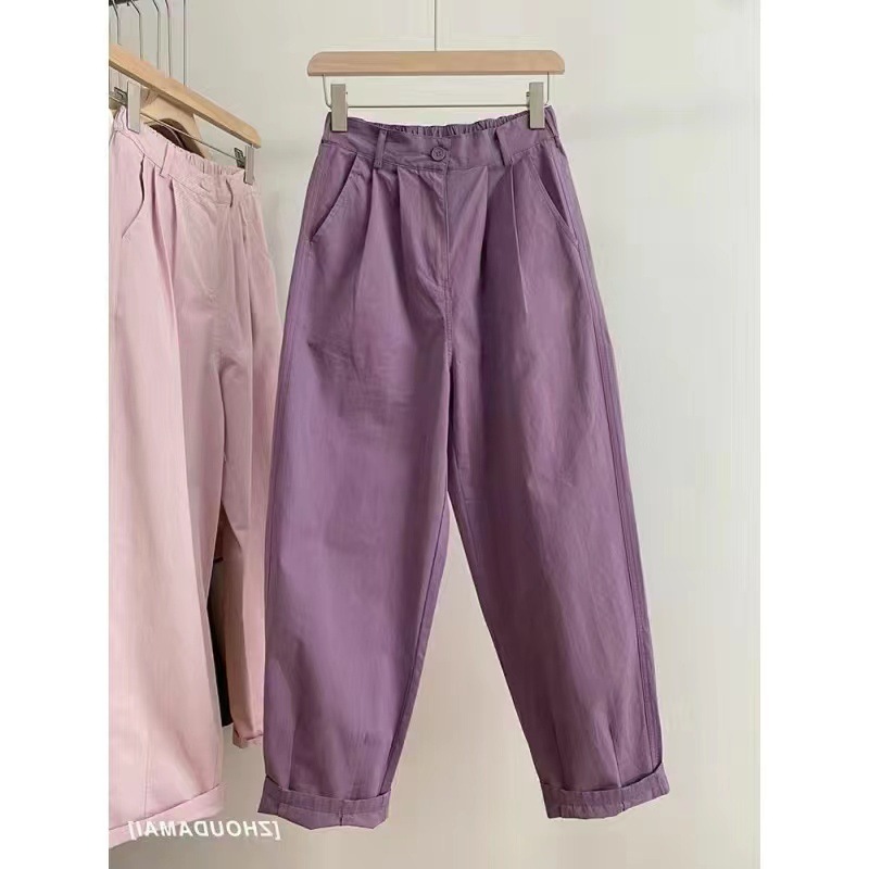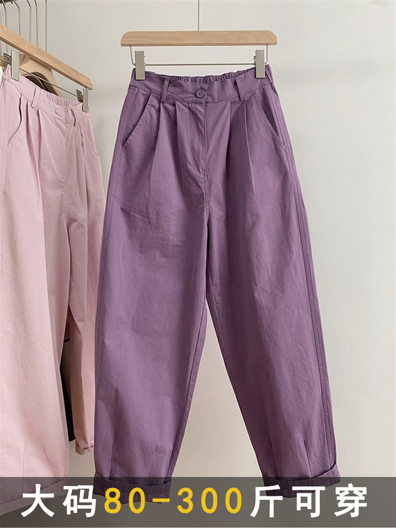 플러스 사이즈 여성의 보라색 캐주얼 와이드 레그 팬츠 여성의 여름 얇은 느슨한 슬리밍 스트레이트 팬츠 할란 당근 바지스토어 가기