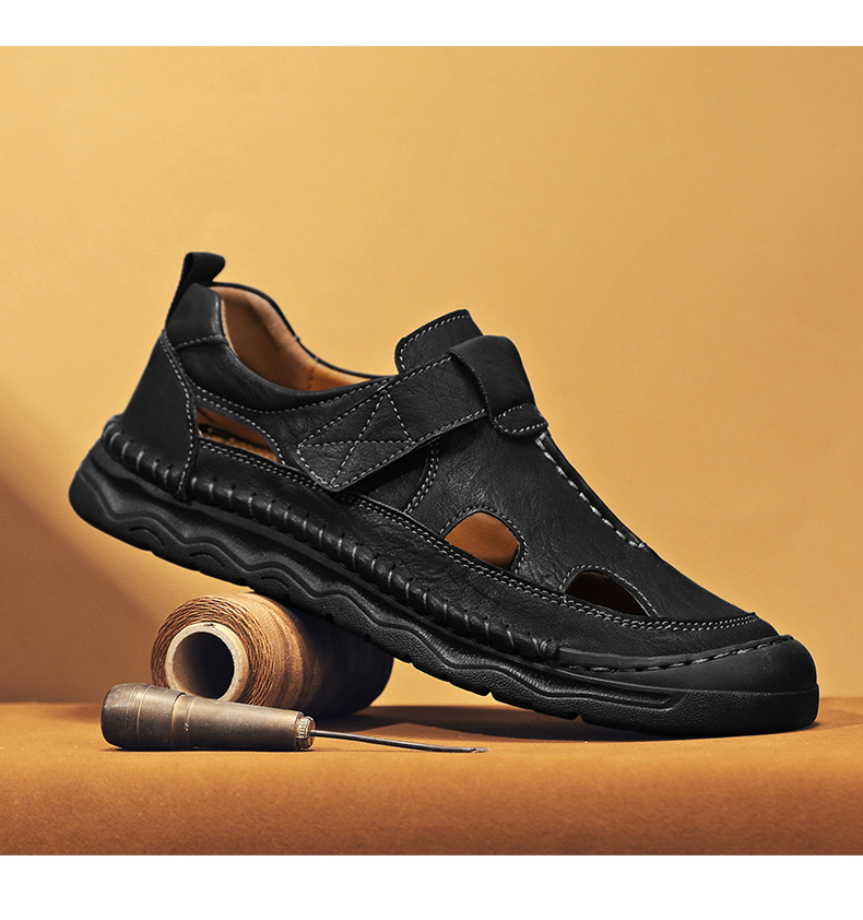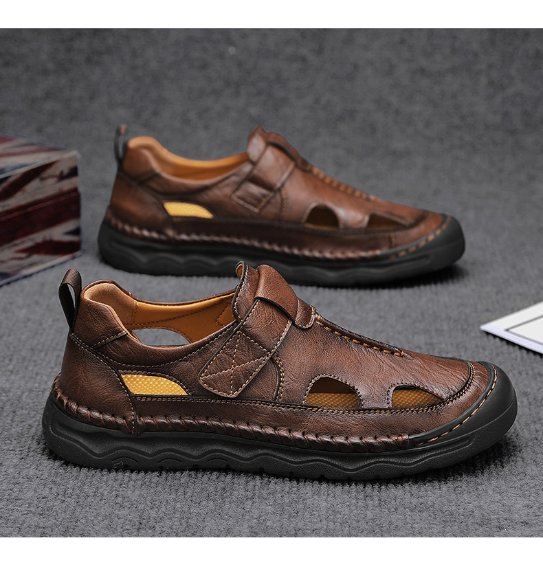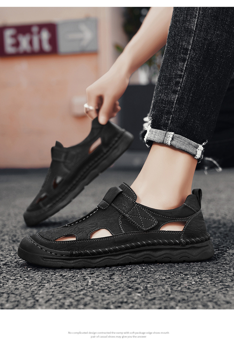 여름 아웃웨어 샌들 2025 새로운 캐주얼 홀 슈즈 남성 플러스 사이즈 46 소프트 하단 드라이빙 비치 슈즈