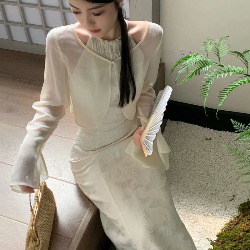 여름용 여성용 새로운 중국 스타일 개선된 쉬폰 자외선 차단 의류, 스커트, 작은 숄, 짧은 가디건 재킷, 얇은 거즈 블라우스