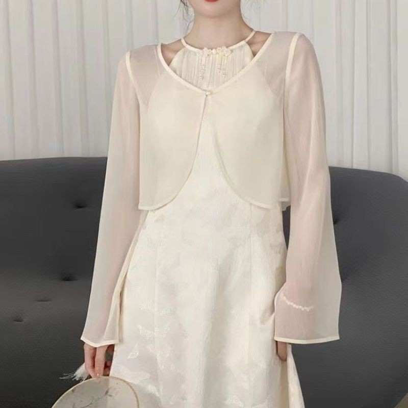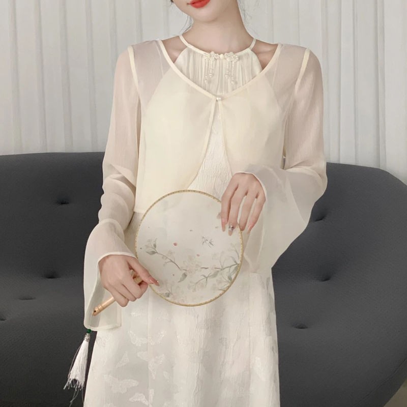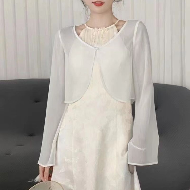 여름용 여성용 새로운 중국 스타일 개선된 쉬폰 자외선 차단 의류, 스커트, 작은 숄, 짧은 가디건 재킷, 얇은 거즈 블라우스스토어 가기