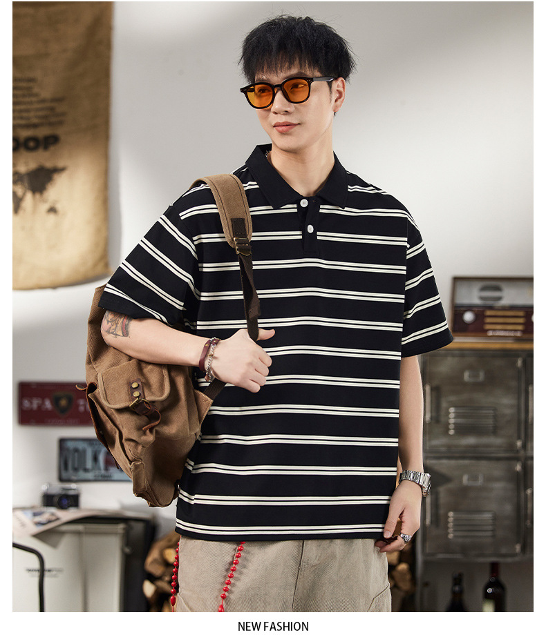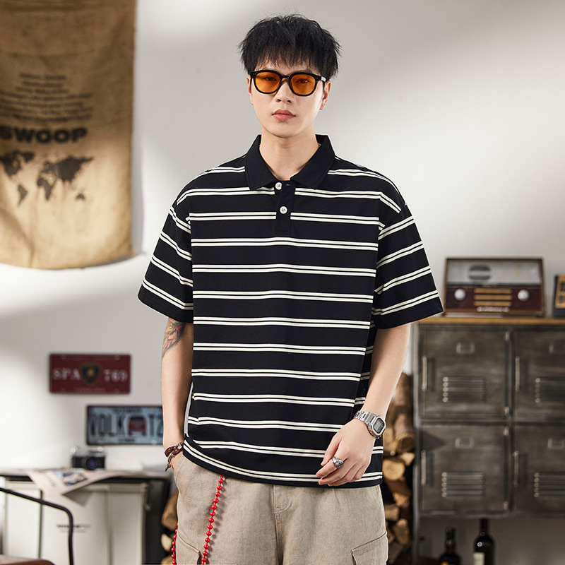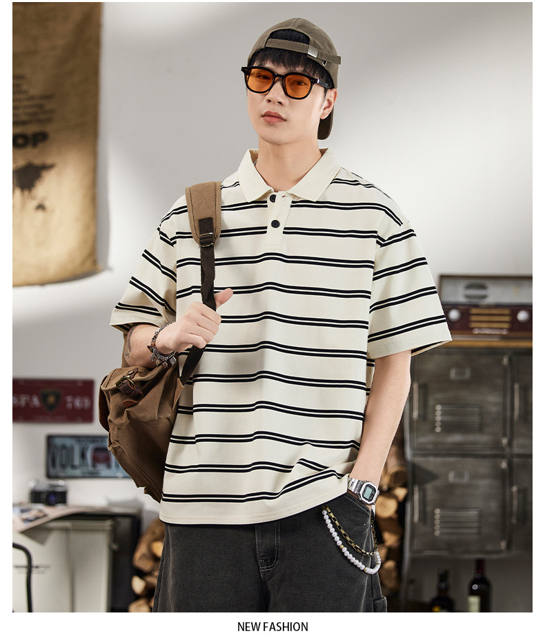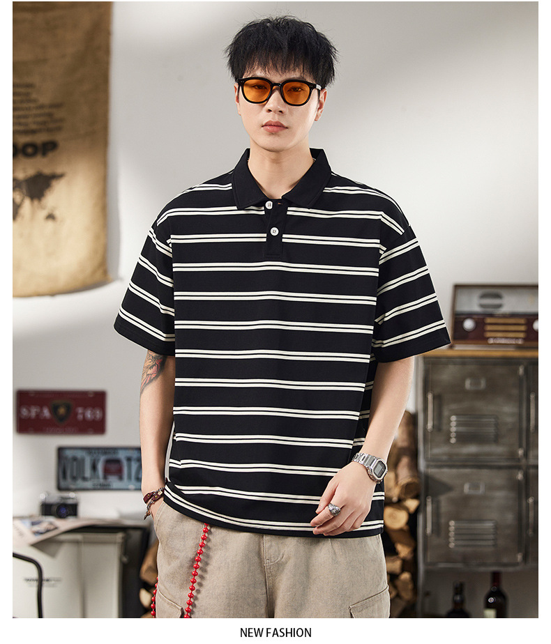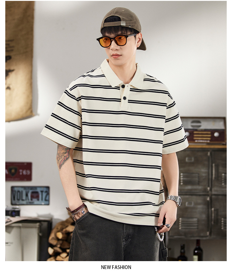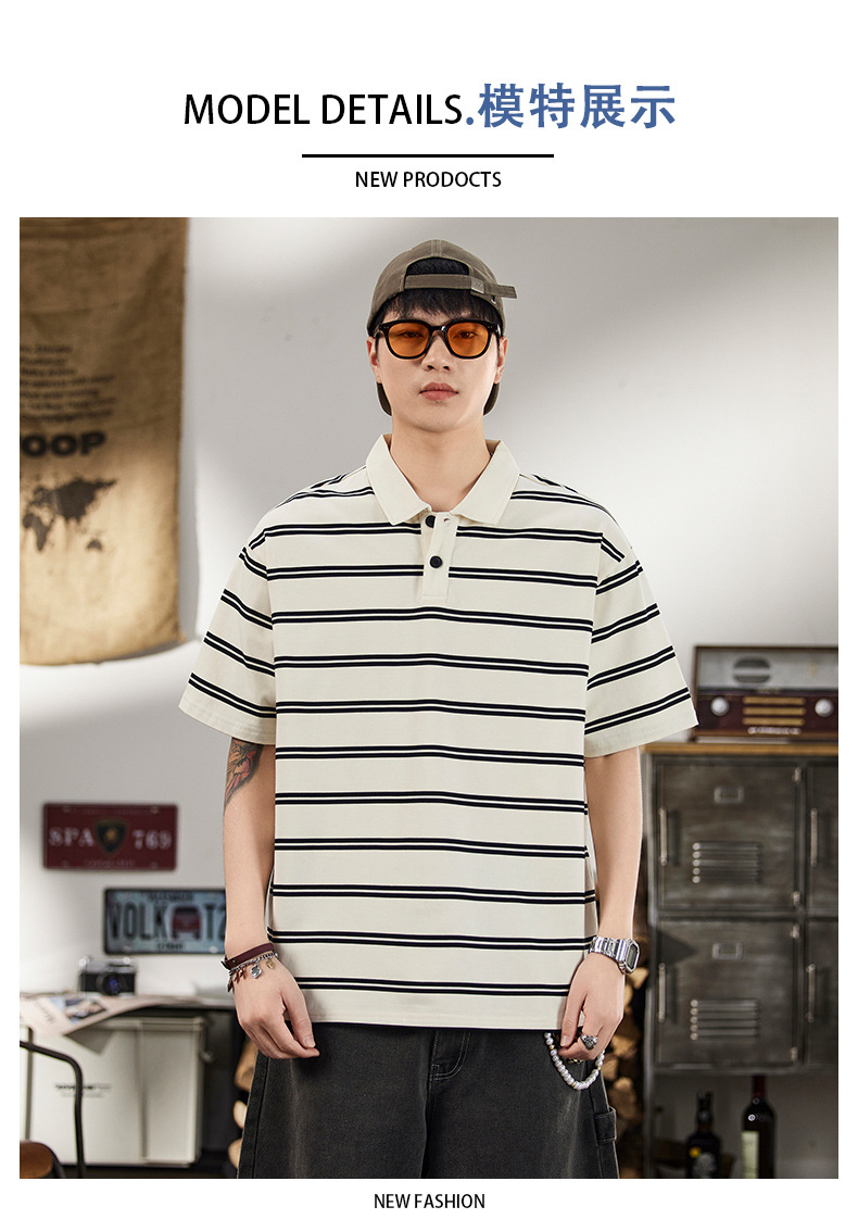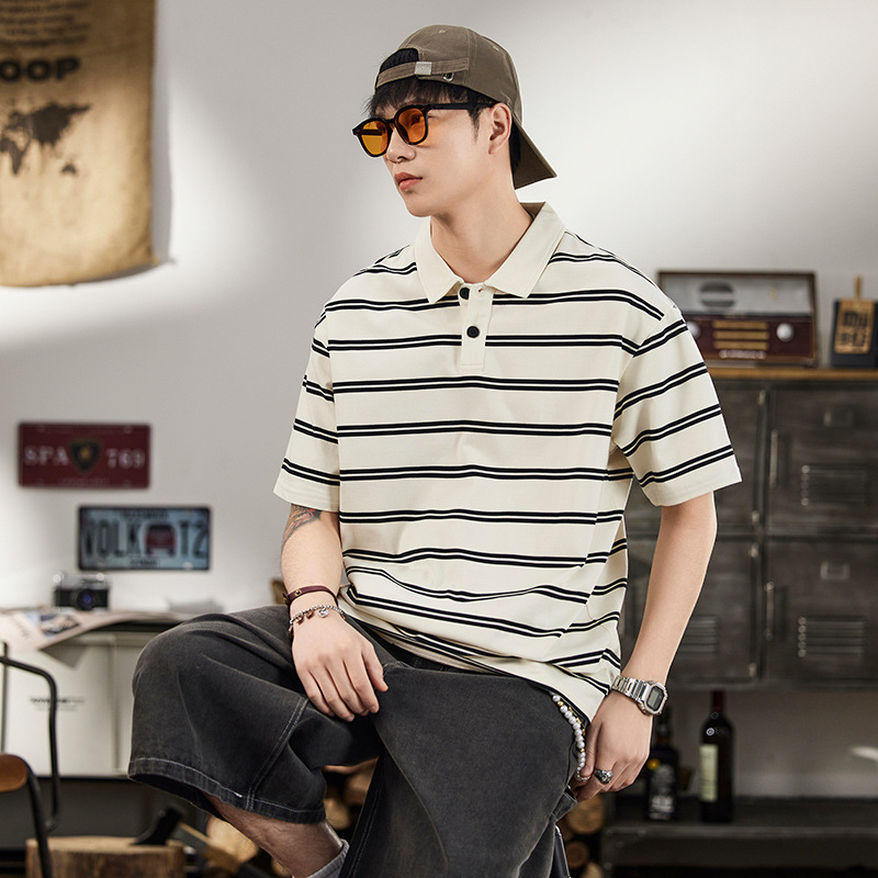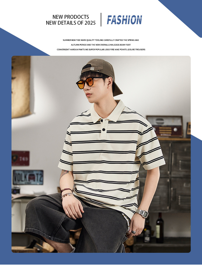 스트라이프 반팔 남자 2025 년 여름 새 루즈 옷깃 캐주얼 한국식 패션 올매치 폴로 셔츠스토어 가기