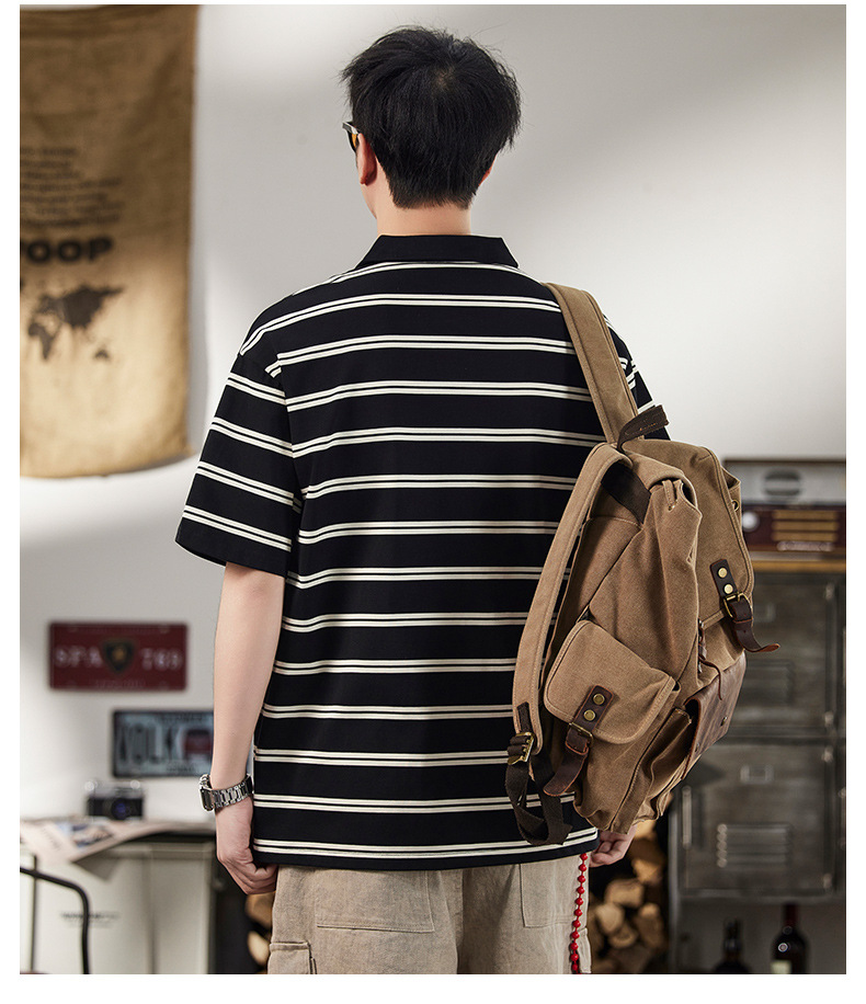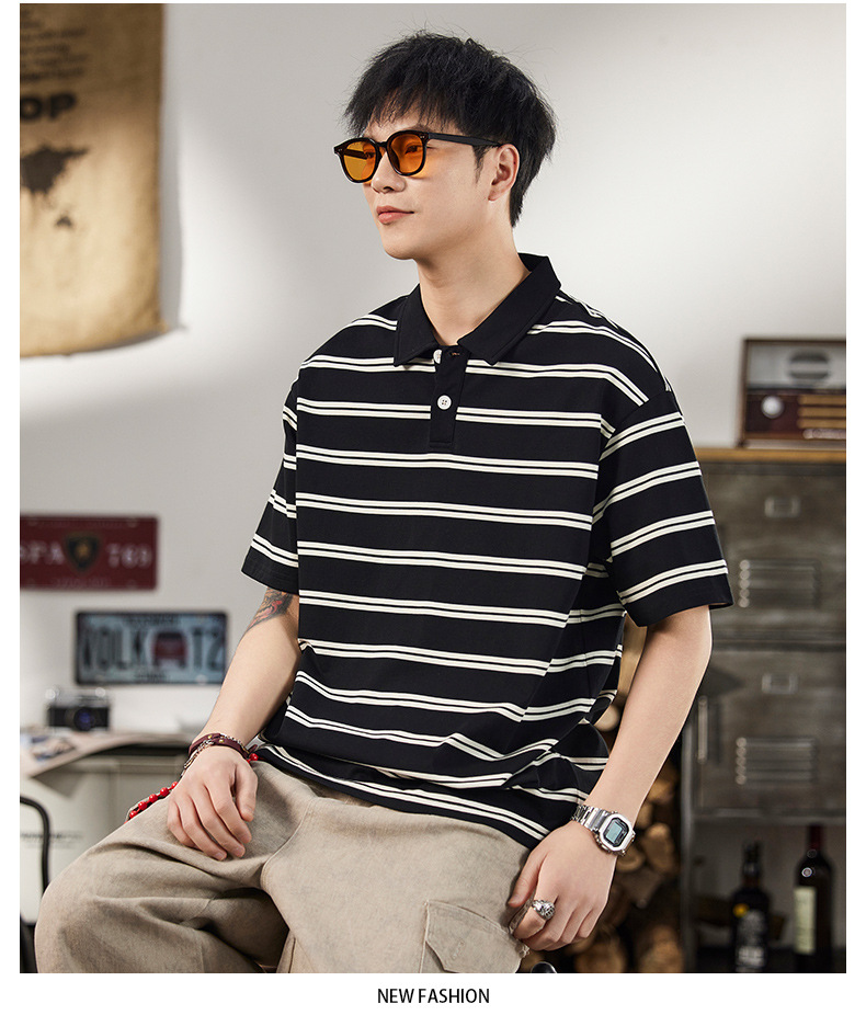 스트라이프 반팔 남자 2025 년 여름 새 루즈 옷깃 캐주얼 한국식 패션 올매치 폴로 셔츠