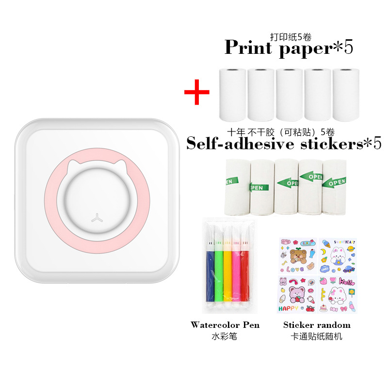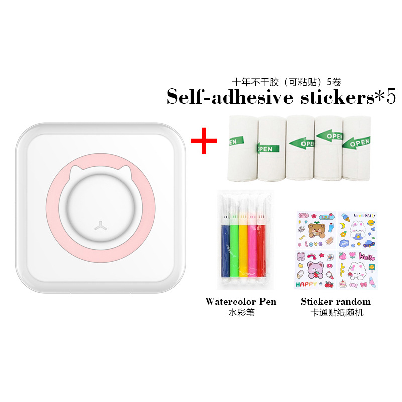 • 재고 있음: C15 대외 무역 버전 화이트 핑크 + 10년 접착식 5롤 + 수채화 펜 + 임의 스티커