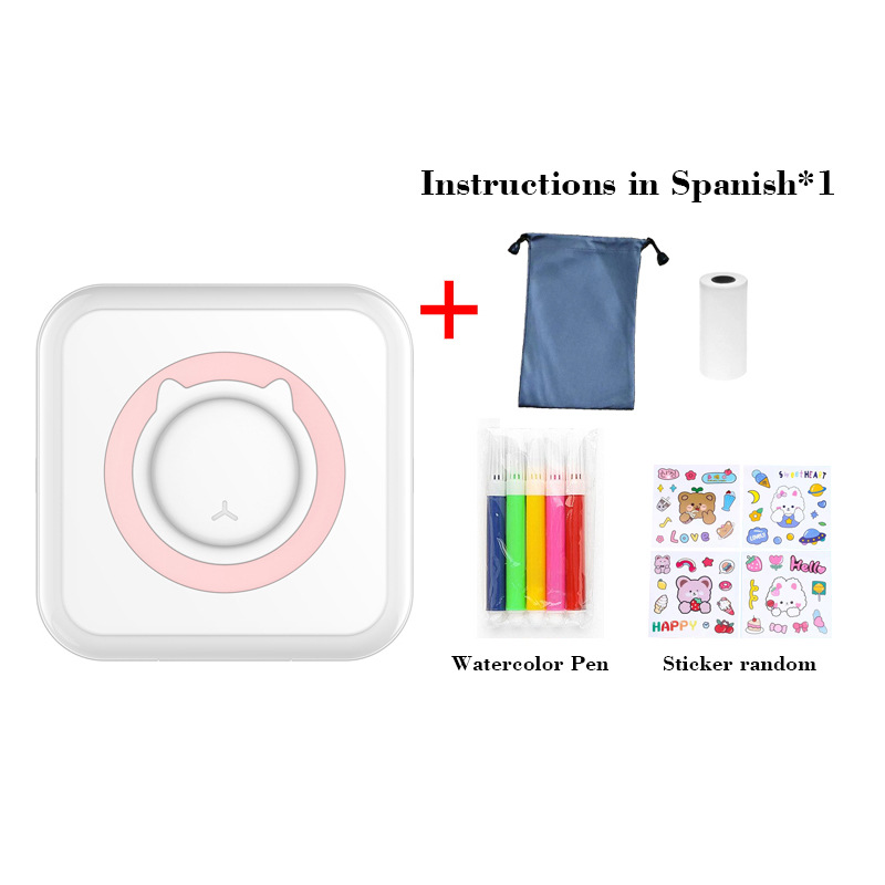 • 재고 있음: C15 대외 무역 버전 화이트 핑크 + 인쇄 용지 1롤 + 수채화 펜 + 보관 가방 + 무작위 스티커