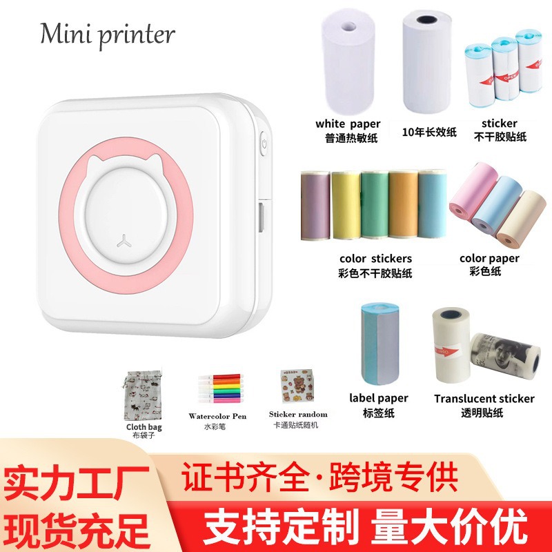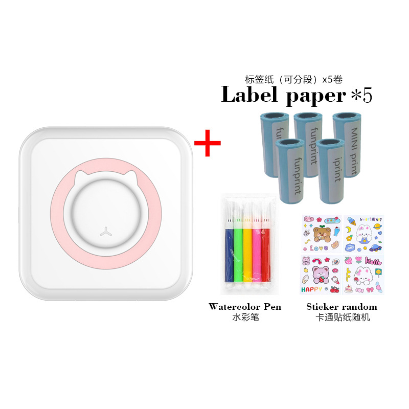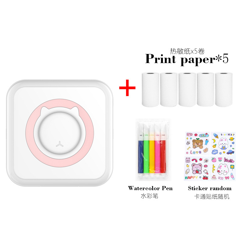 • 재고 있음: C15 대외 무역 버전 화이트 핑크 + 인쇄 용지 3롤 + 수채화 펜 + 임의 스티커