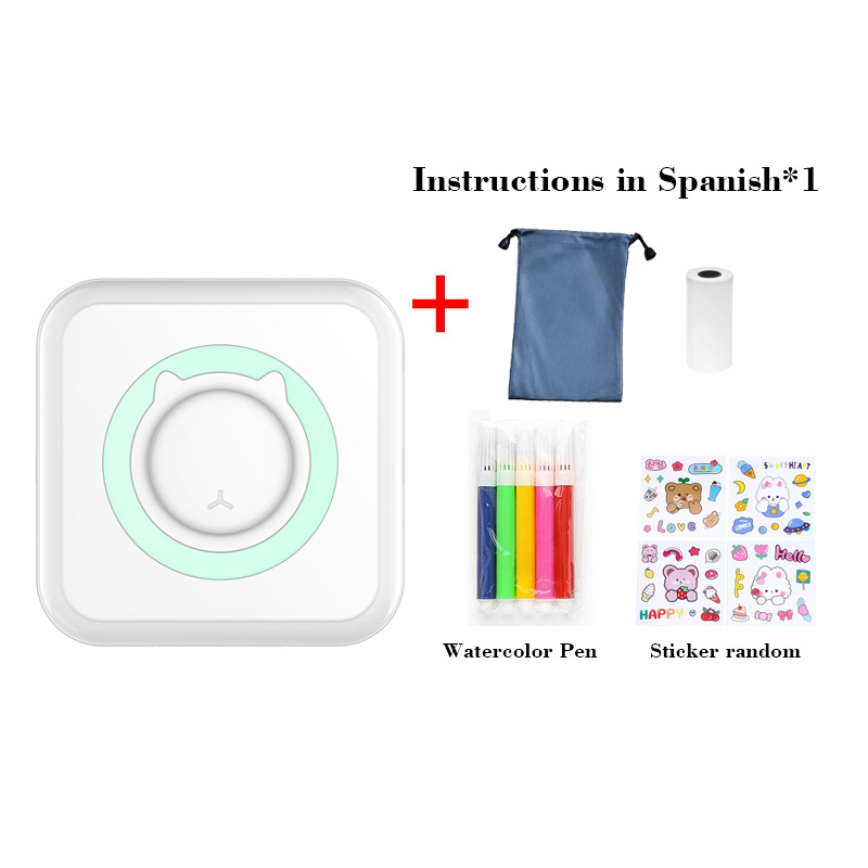 • 재고 있음: C15 대외 무역 버전 흰색 및 녹색 + 인쇄 용지 1롤 + 수채화 펜 + 보관 가방 + 무작위 스티커